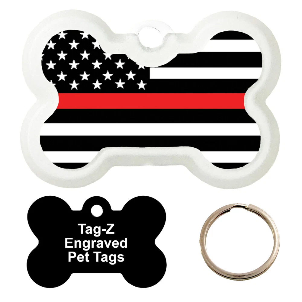RED LINE FLAG - CUSTOMIZED - PET TAG - BONE SHAPE - TAG-Z DOG TAGS