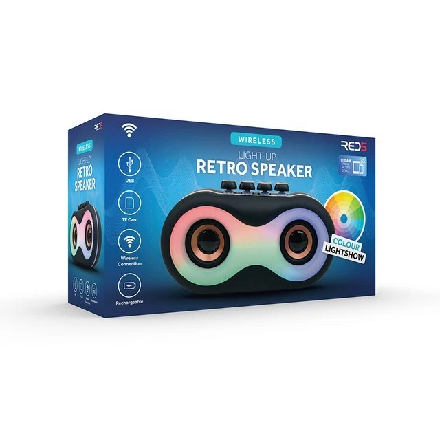 Listen to music wherever you are with this Retro Wireless Speaker! It’s perfect for when you’re traveling or always want music around you thanks to its portability. You can play music using the AUX line (standard 3.5 mm jack), via USB, by adding a TF card, or wirelessly. The speaker has LED lights and can play for up to 3 hours on one charge (USB charging cable included). Plus, you can use the volume buttons to control how loud you want the music to be. So, if you love listening to music and need better sound than your phone speakers, order this Retro Light-up Wireless Speaker today! It’s a wireless retro speaker! Has colour changing LED lights Listen via USB, Micro SD, AUX, or wirelessly A great gift for anyone that enjoys music Measures approx. 20 cm x 7 cm x 10 cm