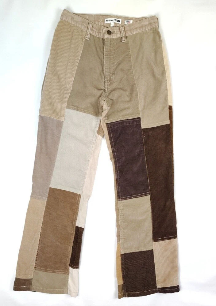 RE/DONE Levi’s Corduroy 70s Patch Jeans Multicolor Brown Size 25 Button Fly, Relaxed Crop Straight, Inseam 28" Since this is re/done from vintage jeans, there are some imperfections on fabric. In Good Pre-Owned Condition Measurements in flat Inseam:28 inches Waist:14 inches Rise:11 inches Leg Opening:9 inches Please check the measurements & conditions in photos and I recommend you to compare with your favorite jeans! Pre-owned clothing may have a variance in size and fit. If you have any questions, please let me know. Smoke Free, Pet Free Home Visit my store for new listings! Thank you for looking!