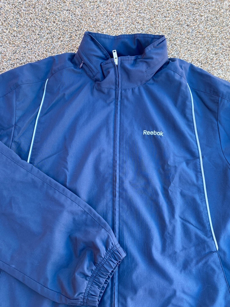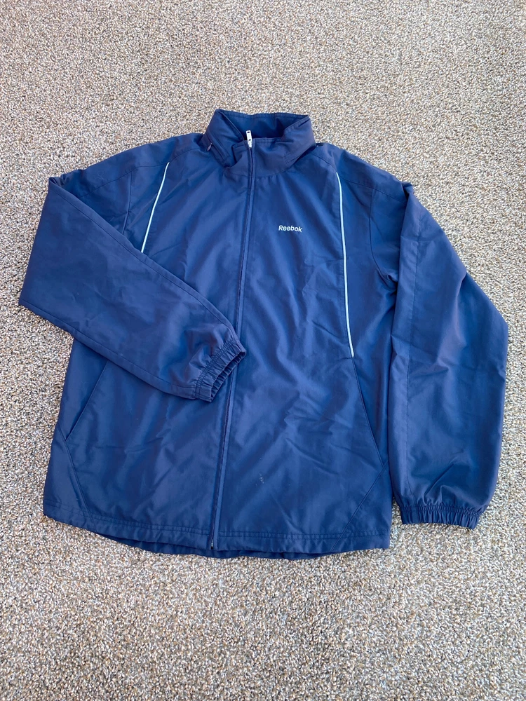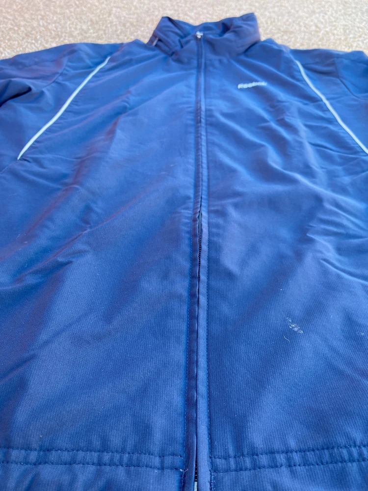 Item for Sale: Used Vintage Reebok Full Zip Jacket Size: S Color: Blue Pre-Owned / Great Condition (Very Nice Jacket, Nice Logo, Nice Feel, Has spot on bottom front of jacket, see last photo) *PLEASE SEE PHOTOS FOR MEASUREMENTS* (For Tops Armpit to Armpit – Collar to Bottom) *RECOMMEND MEASURING FAVORITE FITTING GARMENT TO COMPARE* We Do Same or Next Day Shipping So Be Ready to Receive Your Item in 2-5 Business Days. Buy 2+ Items and Combined Shipping is 9.99. If you accepted a best offer, we can discount multiple items to the actual shipping and provide a partial refund after you receive the items. Thank you! Please feel free to ask any questions you may have; I answer most questions instantly!