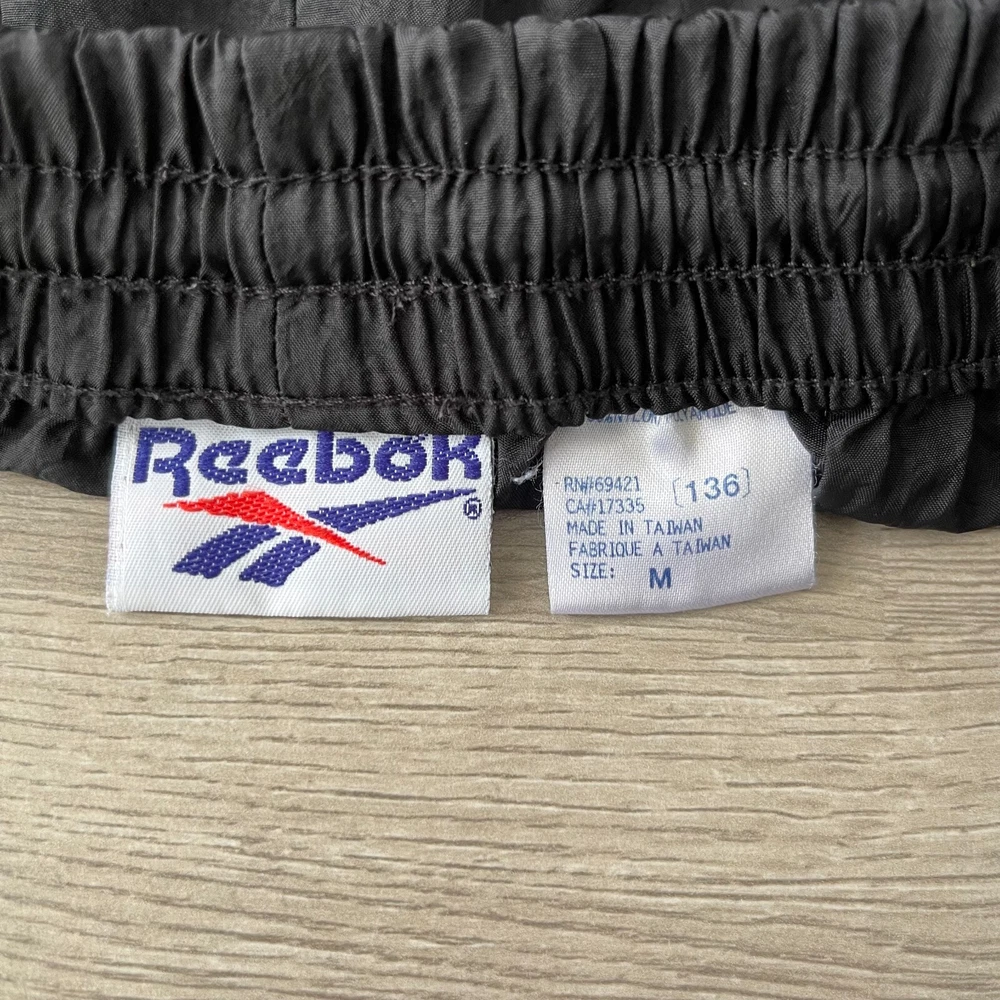 Men's vintage REEBOK pants, size Medium. Black. Elastic waist with drawstring. Hand pockets. Zippered ankles. In excellent, gently worn condition. Measurements: approx. 17"-42" waist, 32" inseam Thank you so much for your interest! Please feel free to message with any questions.