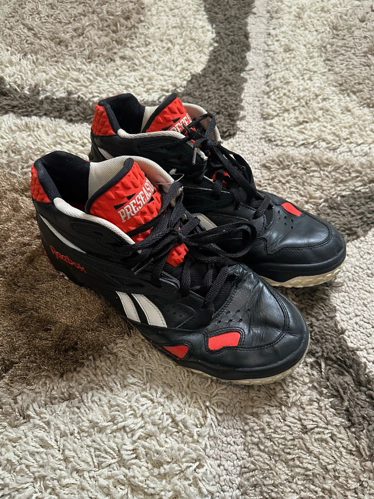 These Reebok Preseason Emmit Smith sneakers are a must-have for any athletic shoe collector. With a multicolor design and size 9.5 US men's shoes, these sneakers are perfect for running and jogging. The sneaker's style is perfect for men who want to make a statement while staying comfortable. The shoes are made by Reebok, a trusted brand in the athletic shoe industry. These sneakers are perfect for any man who wants to add a stylish touch to their wardrobe while staying comfortable during their daily activities. Don't miss out on these Preseason Emmit Smith sneakers, a great addition to any shoe collection.