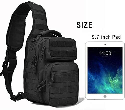Description Desc.: Tactical Rover Sling Bag Pack Small size with Tactical US Flag Patch Sling pack is made of durable 600D fabric water-resistant, and size: 12 * 9.5 * 6 inch (H*W*D), it's enough for carrying 9.7 iPad, small notepad, keys, wallet, cell phone, flashlight, gloves, bottle of water,etc. on a daily basis. Tactical sling bag with large Velcro pad in the concealed main compartment and the back compartment. Awesome as a pistol range bag for 1-2 handguns and lots of ammo or as tactical assault pack. Sling bag backpack has adjustable and comfortable shoulder strap, and also has two smaller straps they help reduce the sway of the bag while moving as small military rover shoulder sling backpack. It allows you to configure your pack to carry it as a Sling bag, Chest Pouch, tactical pack or simply Hand Carry it by the Hand Strap. A generous number of dividers, straps, clips, loops, pockets, and snaps give this Compatible Pack endless configurations for whatever your specific needs are. Small tactical rover sling pack with molle as sling day pack or EDC bag, it's made of durable 600D polyster.Durable and water-resistant. Sling pack size: 12 * 9.5 * 6 inch (H*W*D), enough for carrying 9.7 iPad, small notepad, keys, wallet, cell phone, flashlight, gloves, bottle of water, chargers etc. on a daily basis Tactical sling bag with large Velcro pad in the concealed main compartment and the back compartment. Awesome as a pistol range bag for 1-2 handguns and lots of ammo or as tactical assault pack. Sling bag backpack has adjustable and comfortable shoulder strap, and also has two smaller straps to help reduce the sway of the bag while moving as small military rover shoulder sling backpack. Sling pack is a great small tactical sling range bag or travel sling bag to take on small trips or go hammocking for a little bit where you may require some snacks or other relatively small items.