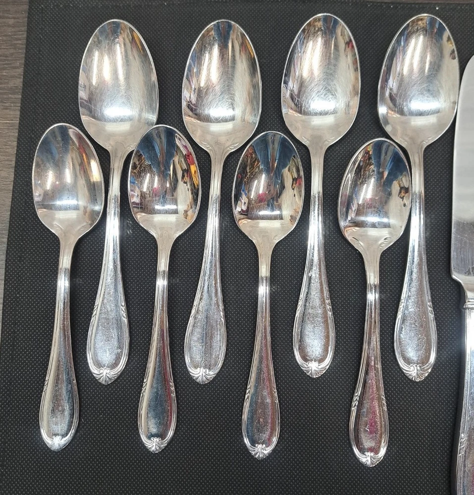 Finish:GlossyModel:Four 18/10gtin13:Does not applyHandle Material:Stainless SteelCountry/Region of Manufacture:ChinaUPC:Does not applyType:Standard SetMaterial:Stainless SteelNumber of Items in Set:20Set Includes:Fork, Knife, SpoonService For:4Brand:Reed & BartonPattern:MARLBOROUGHColor:Silver