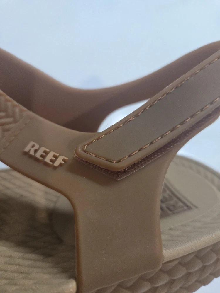 These Reef Sandals are perfect for girls in size 5 (9 in) who love the beach and want stylish yet functional footwear. These slip-on sandals feature an open toe design and are made of waterproof rubber/plastic material, making them ideal for casual occasions in the summer. The adjustable straps provide a comfortable fit while the non-slip sole ensures safety on wet surfaces. The brown color and fisherman style add a fun and beachy touch to the overall look, making them a great choice for active kids who enjoy playing by the water. The shoe length (9 inches) and the ankle marking (WS5#).