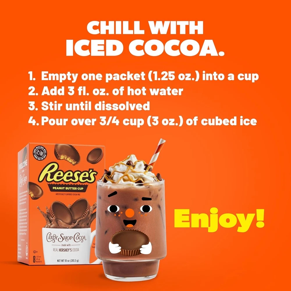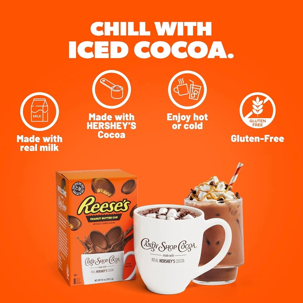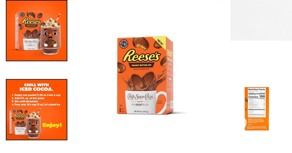 Decadent REESE'S Peanut Butter Cup Hot Cocoa Mix - Instant, No Peanuts, 8 Packs ‹ › ‹ › ‹ › ‹ › ‹ › ‹ › ‹ › ‹ › ‹ › Decadent REESE'S Peanut Butter Cup Hot Cocoa Mix - 8 Packs Welcome to the where indulgence meets convenience! Immerse yourself in the irresistible and timeless blend of rich chocolate and mouthwatering peanut butter flavor with our Decadent REESE'S Peanut Butter Cup Hot Cocoa Mix. Product Features: Made with Real Milk: Experience the creamy delight that only real milk can provide. Instant Enjoyment: Just add hot water, and watch this luxurious cocoa dissolve into a rich and creamy treat. Versatile Treat: Enjoy it hot during chilly nights or iced on warm, sunny days—this cocoa is perfect any time of ! Peanut Free: Rest easy—our cocoa mix contains no peanuts, making it safe for those with related allergies. Gluten-Free & Kosher Dairy Certified: Indulge without worry as these quality ingredients meet dietary needs. Savor the Magic: Not just a drink, but a sensational experience! Revel in the classic combination of chocolate and peanut butter brought to life by the authentic sweetness of real HERSHEY'S cocoa. Elevate your snack time or dessert menu with a cocoa mix that promises to indulge your senses at every sip. Why Choose Our Hot Cocoa Mix? Whether you're cozying up on the sofa, hosting a gathering, or seeking a delightful refreshment on a summer day, our REESE’S Peanut Butter Cup Hot Cocoa Mix is your go-to companion. With the perfect blend of nostalgia and flavors, it transcends other cocoa mixes, ensuring a luxurious experience every time. Don't deny yourself this delightful treat—grab your 8-pack today and unleash the timeless combination of chocolate and peanut butter that only REESE’S can provide! Shipping Free & Fast Shipping - We offer free shipping to most of the USA with a normal delivery time of 3-7 days. However, due to the current situation, additional delivery time (up to 3 weeks) may be required for some items. Alternative Carriers - We may use alternative carriers (e.g. USPS, FedEx, UPS, etc.) to ensure your package arrives safely and on time. Due to the use of multiple carriers, we are unable to provide a tracking number automatically. Handling Time - Orders are processed and shipped within 1-2 business days of receiving cleared payment. Shipping Restrictions - Shipping to Alaska, Hawaii, Puerto Rico, Guam, and other US territories may incur shipping charges or delivery restrictions. Please contact us before ordering, or your order can be refunded/cancelled. State Restrictions - There may be restrictions based on your state of purchase. For example, certain items may not be shipped to California due to state regulations. Contact for Tracking Updates - If you require tracking updates or have any concerns about the delivery of your order, please feel free to contact us, and we will be happy to assist you. Return 30-Day Hassle-Free Returns - We want you to be completely satisfied with your purchase. If you are not, you can return the item within 30 days of receiving it for a full refund or exchange. Easy Return Process - To start a return, simply contact us and we will provide you with a prepaid return shipping label and detailed instructions. Restocking Fee - There are no restocking fees for returns. However, the buyer is responsible for return shipping costs if the return is not due to a seller's error. Refund Processing Time - Refunds will be processed within 5 business days of receiving the returned item in its condition. Payment We accept all major credit cards, PayPal, and Apple Pay for your convenience. Your payment information is secure and encrypted to ensure a safe and seamless transaction. Please complete your payment within 3 days of purchase to avoid any delays in shipping. Feedback Your feedback is extremely important to us. We strive to provide the best products and customer service possible. If you are satisfied with your purchase, please take a moment to leave us a positive review. If you have any concerns or issues with your order, please contact us before leaving negative feedback. We are committed to resolving any problems and ensuring your satisfaction. Contact Us If you have any questions or concerns, please feel free to out to our customer support team. You can contact us through the eBay messaging system. We are available Monday to Friday, 9:00 am to 5:00 pm EST, and we will do our best to respond to your inquiry within 24 hours. Buy it now and enjoy a pleasant shopping experience! Expiration Date: REESE'S Hot Chocolate Mix Calories per 100 g/mL: REESE'S Hot Chocolate Mix Course: Beverage Number in Pack: 8 Style: Hot Chocolate Unit Quantity: 1.25 oz Food Specifications: Gluten Free,Kosher Flavor: Chocolate,Peanut Butter Product: Baking Mix Type: Cocoa Mix Item Weight: 1.25 oz