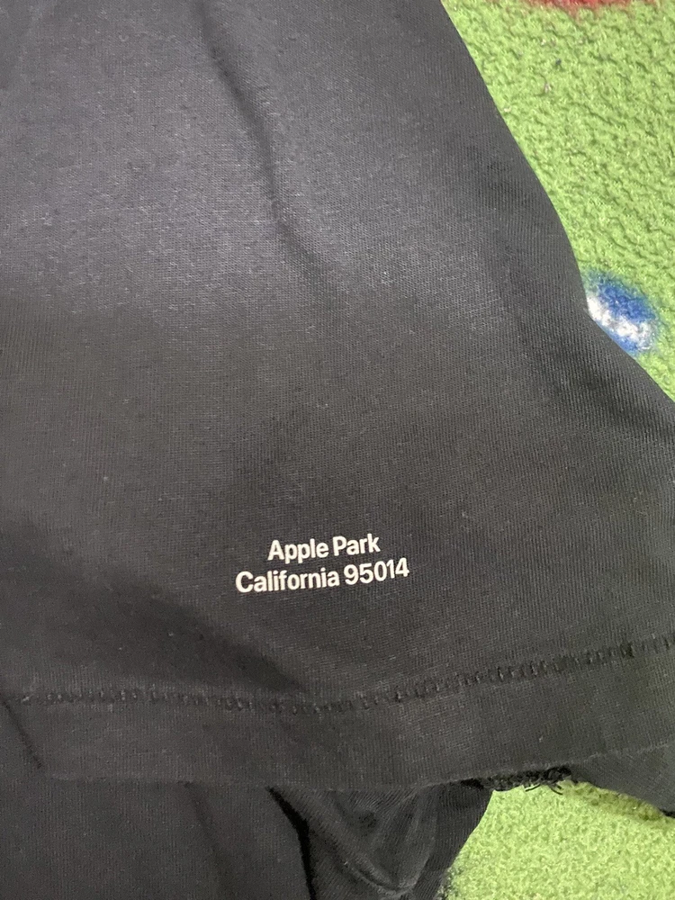 Get your hands on this limited edition Apple Park promo tech tee! Featuring a sleek black color and the iconic Apple logo, this t-shirt is a must-have for any fan of the brand. Available in men's size large, this regular fit t-shirt is perfect for everyday wear or for special occasions. Made by the trusted brand PARK, this t-shirt is sure to be a hit with anyone who loves stylish and comfortable clothing. Don't miss out on this amazing opportunity to add this unique t-shirt to your collection. condition: 10/10 so crispy