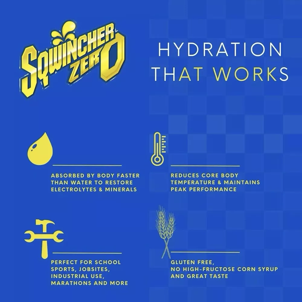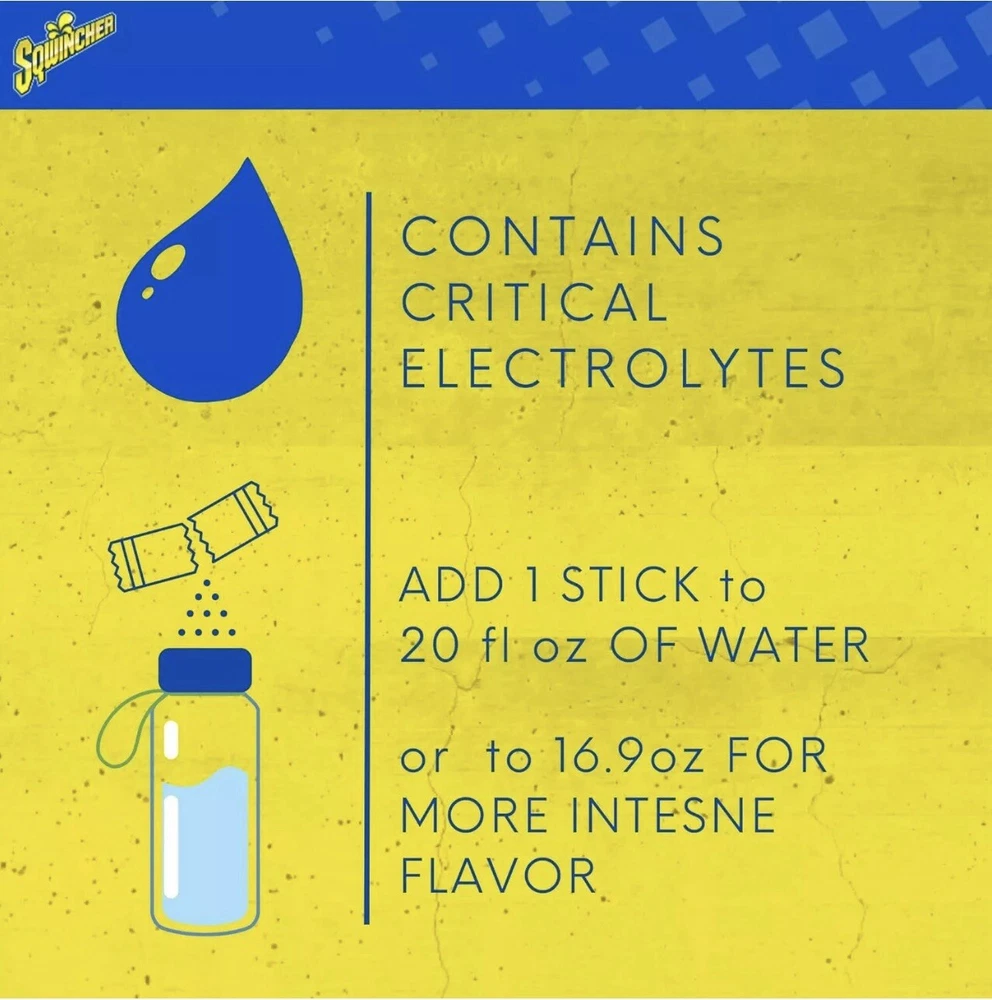 Type: Electrolytes Features: Sugar-Free Formulation: Powder Country/Region of Manufacture: United States When to Take: After Workout, Before Workout, During Workout Flavor: Assorted Item Weight: 5.5 oz Brand: Sqwincher Main Purpose: Rehydrate, Baseball, Basketball, Bodybuilding, Boxing, CrossFit, Cycling, Field Hockey, Gym & Training, Ice Hockey, Running & Jogging, Weightlifting Type of Diet: Gluten Free, Sugar Free