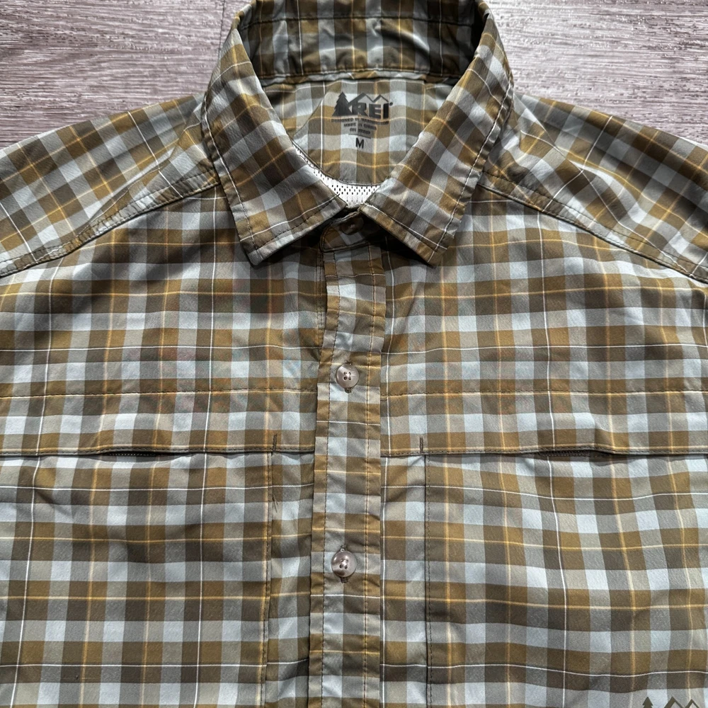 Country/Region of Manufacture: Vietnam Collar Style: Spread Vintage: No Accents: Button, Logo Sleeve Length: Short Sleeve Theme: Fish, Outdoor, Classic, Sports, Nature Size: M Fabric Type: Woven Fit: Regular Material: Nylon Closure: Button Department: Men Handmade: No Color: Blue Features: All Seasons, Breathable, Easy Care, Lightweight, Moisture Wicking, Pockets, Quick Dry, Stretch, Tagless, UV Protection, Wrinkle Resistant, vented Brand: REI CO OP Pattern: Plaid Season: Fall, Spring, Summer, Winter Personalize: No Size Type: Regular Neckline: Collared Type: Button-Up Occasion: Casual, Travel, Workwear Garment Care: Machine Washable