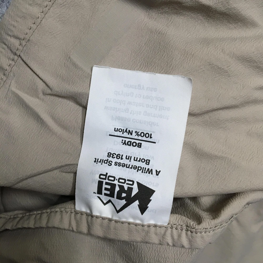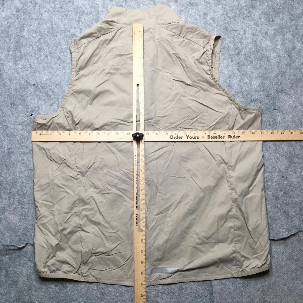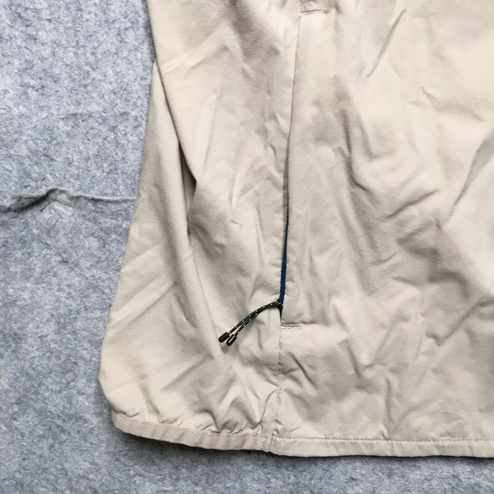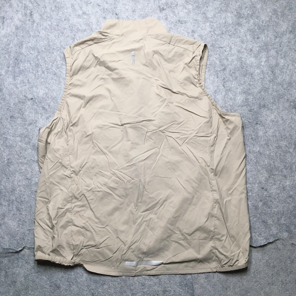 Brand: REI Co-op. Item: Mens lightweight windbreaker vest designed for hiking, walking, travel, and casual outdoor layering. Tag size: Mens XL (X Large) with a regular fit. Color: Solid beige body with contrasting blue front zipper and zipper pulls. Material: Shell/body 100% nylon (per interior fabric-content label). Features: Full-length front zipper, stand-up collar, two front zip hand pockets with corded zipper pulls, lightweight unlined nylon shell for wind-resistant layering, straight hem, and reflective details including REI Co-op back logo and a reflective strip near the lower back hem for added visibility. Branding and labels: Printed interior neck logo with REI co-op branding, XLarge size marking, MADE IN VIETNAM text, and A WILDERNESS SPIRIT BORN IN 1938 tagline; reflective REI co-op logo printed at the upper back; interior woven care and fabric-content label listing BODY: 100% NYLON and additional REI co-op branding; interior production tag with codes 22336-S21 and 186045. Country of origin: Made in Vietnam. Add a second (or more) item to your cart from my store to receive a discount on your order! [does not apply to orders made with Best Offer] (shown in cart) Shipping is a non-negotiable flat rate based on size and weight. Each additional item is only $2 more in shipping. Please message me with any questions. I accept free returns for any reason within 60 days of delivery date, including Does not fit and Just didn't like. Please note original shipping may be withheld in certain situations. Items are shipped from a smoke-free home and washed with Free & Clear detergent (except Dry Clean Only items). US Seller. Please message me with any questions! Items shipped within 1 business day (unless there is a vacation note).