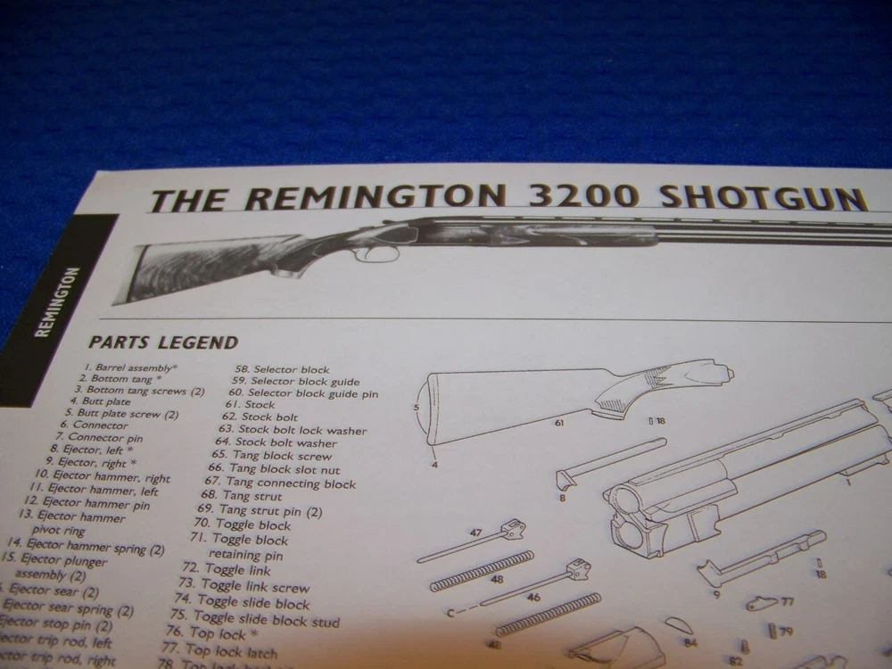 UP FOR SALE IS AN ORIGINAL PRINT 2-PAGE DRAWINGS ON ....... REMINGTON 3200 SHOTGUN (12 GA.) (2-PAGES) Page/s size: APROX: 8 1/2" X 11" SUBJECT: . REMINGTON 3200 SHOTGUN (12 GA.) . . . . .....PERFECT FOR FRAMING!!! AUTHOR/ARTIST: N/A YEAR: 2009 ORIGINAL PRINT SCALE: N/A ARTICLE FEATURES: EXPLODED VIEW WITH PARTS LEGEND (IF SHOWN)/DETAILS/MAGAZINE (IF APPLICABLE)/SHORT DISASSEMBLY INSTRUCTIONS CONDITION: GREAT-LIGHT COLORING(NORMAL)..NOTE: ** SOLD FOR 2-PAGES DRAWINGS/PROFILES ...ANY OTHER ARTICLE ON BACK OF DRAWINGS/ARTICLE ARE NOT REPRESENTED IN THIS AUCTION!*** (REMEMEBER THESE ARTICLES ARE EXTREMELY OLD AND RARE...SOME MAY HAVE SOME BORDER DISCOLORATION/SMALL EDGE CHIPS/PAGE DISCOLORATION)/BINDING CUTOUTS.....SEE CONDITION AND NOTES LISTED ABOVE AS TO EACH ARTICLE! **THESE ARE AIRCRAFT ARTICLES THAT HAVE BEEN EXTRACTED FROM VINTAGE MAGAZINES/ECT,.. AND ARE INDIVIDUAL PAGES OF EACH SUBJECT AND SOLD AS COMPLETE ARTICLES ON EACH SAID AIRCRAFT AS LISTED ABOVE!.. NOT SOLD AS A COMPLETE MAGAZINE or BOOKLET!!! **all articles are shipped flat on cardboard flat and mail flat in manila envelope to INSURE condition! ** I DO OFFER COMBINED SHIPPING ON MULTIPLE ITEMS PURCHASED