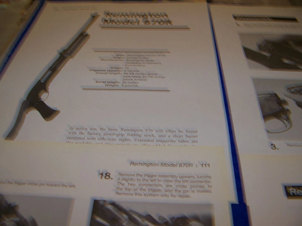 NOTE: THE REASSEMBLY TIPS ARE VERY VERY SHORT!...REASSEMBLY IS DONE IN REVERSE ORDER OF THE INSTRUCTIONS AND PHOTOS THESE ARE EXTREMLY RARE PROFILES OF ALL TYPES OF GUNS SUCH AS LISTED BELOW!.........DONT MISS YOU CHANCE TO AD THIS TO YOUR COLLECTION! THESE ORIGINAL PERIOD (1960'S/70'S/80'S/90'S ) PAPER ARTICLES WERE BOUGHT FROM A GUN COLLECTOR ESTATE SALE AND ARE SLEDOM SEEN!.......ALL IN AWESOME CONDITION FOR THEIR AGE! UP FOR SALE IS AN ORIGINAL PRINT 13-PAGE ARTICLE ON:.. REMINGTON 870R (12 GA.) (8-PAGES) & BERETTA CX4 STORM ) (5-PAGES) Page/s size: APROX: 8 1/4 " X 10 1/2" AUTHOR/ARTIST: N/A YEAR: 2008 ORIGINAL PRINT SCALE: N/A ARTICLE FEATURES: HISTORY/DETAILS/PHOTO/TAKEDOWN INSTRUCTIONS WITH PHOTOS/ REASSEMBLY TIPS (SHORT) /SPECS & DATA CHART CONDITION: GREAT-LIGHT COLORING (NORMAL ). ** SOLD FOR 13-PAGES DRAWINGS/PROFILES ...ANY OTHER ARTICLE ON BACK OF DRAWINGS/ARTICLE ARE NOT REPRESENTED IN THIS AUCTION! *** (REMEMEBER THESE ARTICLES ARE EXTRMELY OLD AND RARE...SOME MAY HAVE SOME BORDER DISCOLORATION/SMALL EDGE CHIPS/PAGE DISCOLORATION)/BINDING CUTOUTS....SEE CONDITION AND NOTES LISTED ABOVE AS TO EACH ARTICLE! **THESE ARE AIRCRAFT ARTICLES THAT HAVE BEEN EXTRACTED FROM VINTAGE MAGAZINES/ECT... AND ARE INDIVIDUAL PAGES OF EACH SUBJECT AND SOLD AS COMPLETE ARTICLES ON EACH SAID AIRCRAFT AS LISTED ABOVE! NOT SOLD AS A COMPLETE MAGAZINE or BOOKLET!!! **all articles are shipped flat on cardboard flat and mail flat in manila envelope to INSURE condition! ** I DO OFFER COMBINED SHIPPING ON MULTIPLE ITEMS PURCHASED