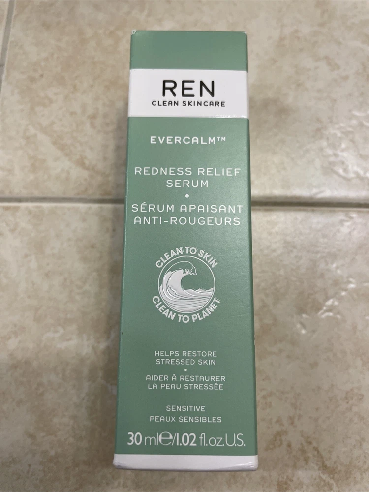 REN Clean Skincare Evercalm Redness Relief Face Serum 1.02 oz 30 ml NEW In Box