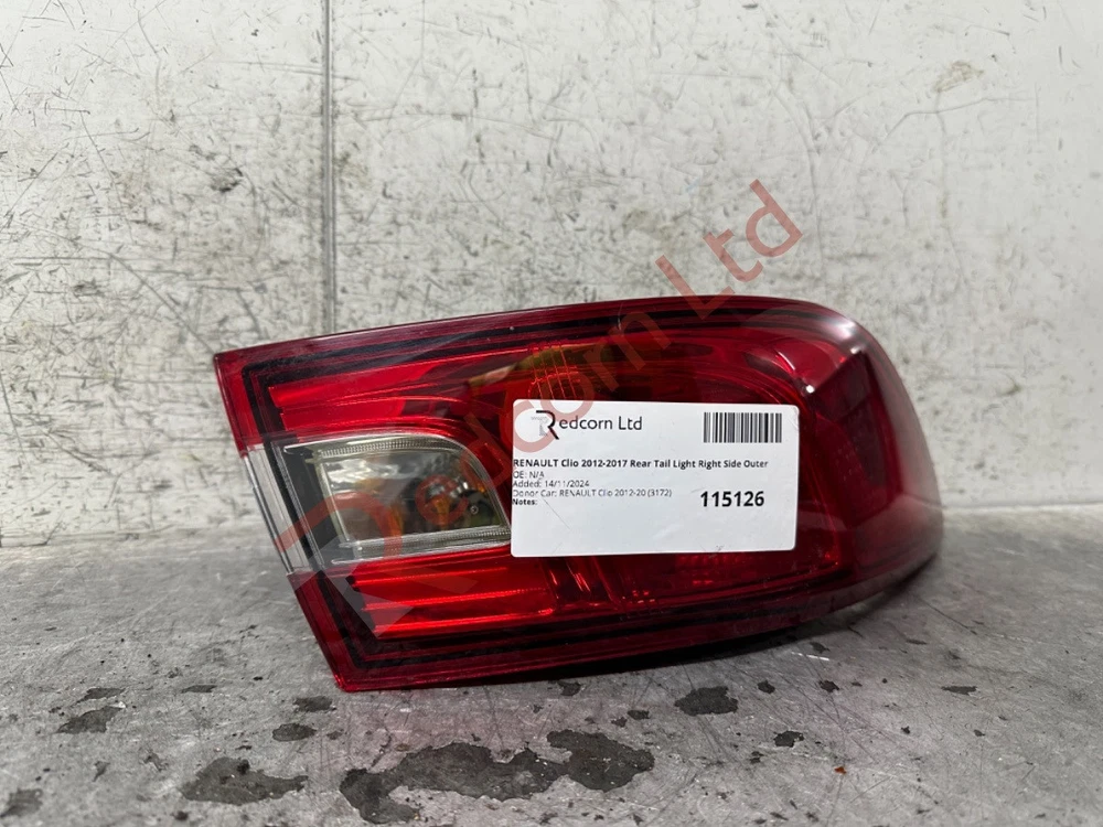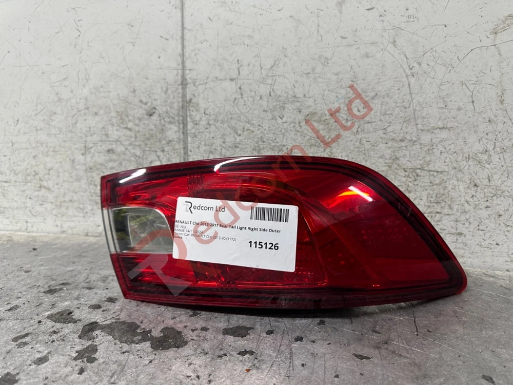 RENAULT Clio 2012-2017 Rear Tail Light Right Side Outer Mon-Fri: 8am-5pm | Sat: 8am-3pm | Sun: Closed STORE ABOUT CONTACT FEEDBACK RENAULT Clio 2012-2017 Rear Tail Light Right Side Outer Manufacturer Part Number: Not Available SKU Code: 115126 Part Number: 108896 Grade: B Please note that goods CANNOT be held; goods aren't confirmed until payment has been completed This Part's Donor Vehicle Vehicle/Model: RENAULT Clio 2012-2017 Bodywork Colour: SILVER Interior Trim Colour: Not Available Interior Fabric Colour: Not Available Manufactured Year: 2012 More From This Vehicle DonorVehicle:3172ID More From Similar Vehicles SimilarVehicle:57865NUM Information & Compatability Compatibility is provided on listings to give an indication of some of the cars this part will fit. However, it may not fit your car due to the many differences with specification and changes on model years. Please take eBay's compatibility as a guide. The best and the easiest way to quickly check if the part is right for you is to compare part numbers. We are experts; so, if in doubt please call or message us and our technical team will be happy to advise. Please be aware that our products are sourced from recycled, used cars. The parts are fully functional, tested and have been removed from UK spec, right hand drive vehicles unless otherwise described. However, please note that you can expect general wear and tear corresponding to normal usage for a car of that year and mileage. Any significant damage or defects will be as listed in the item condition. All mechanical items sold from our site for £5 or more benefits from an automatic 14 day REPLACEMENT guarantee. Should any mechanical item with a value over £5 prove defective within 14 days of purchase please contact us and we will arrange for a suitable replacement to be dispatched to you. All items shipped out are security marked - any security marks showing evidence of the item being tampered with, (especially electrical items), will not be refunded or replaced. All engines and gearboxes are tested before removal from the doner vehicle unless otherwise stated. We take every effort to ensure accuracy in our listings but we can offer no guarantee of colour code being available and if it will be a 100% match to your vehicle due to fade and wear and tear. Coloured body panels should be assumed that a repaint will be required. Customers should note that all items sold with a warranty are engraved & marked with security paint. It is in your interest not to interfere with these markings as signs of tampering will void your warranty guarantee. Find Us For any help or advice with this part please get in touch. We are here to help. Please find us on Google Redcorn Ltd . Office Opening Times: Mon-Fri: 8am-5pm, Sat: 8am-3pm, Sun: Closed. eBay Messages will be replied to within business hours. Collection is welcome. Brantwood Rd, London, N17 0DX Redcorn Thank you for choosing Redcorn Ltd for your used car parts. We are salvage car specialists and provide the market with excellent quality used car parts online direct to you. If you require a part for this car which is not listed on our shop please send us a message with your requirements, we will be able to source the part and provide a new listing for you. Huge Range We recycle over 100,000 vehicles per year. After Sale Support We pride ourselves on our aftercare; just contact us for help. Massive Range of Stock We keep a huge range of stock in our purpose built facility. Money Back Guarantee You can get a full refund if you return the goods within 30 days. CONTACT DETAILS Address: Brantwood Rd, London, N17 0DX Phone: 020 8880 9555 QUICK LINKS Our Store About Us Contact Us Feedback REDCORN LTD We have thousands of parts in stock, with new items arriving weekly. Everything you see on our website is in stock ready for immediate dispatch. © Copyright 2024. Redcorn LTD. All Rights Reserved. Powered By Eladene Systems