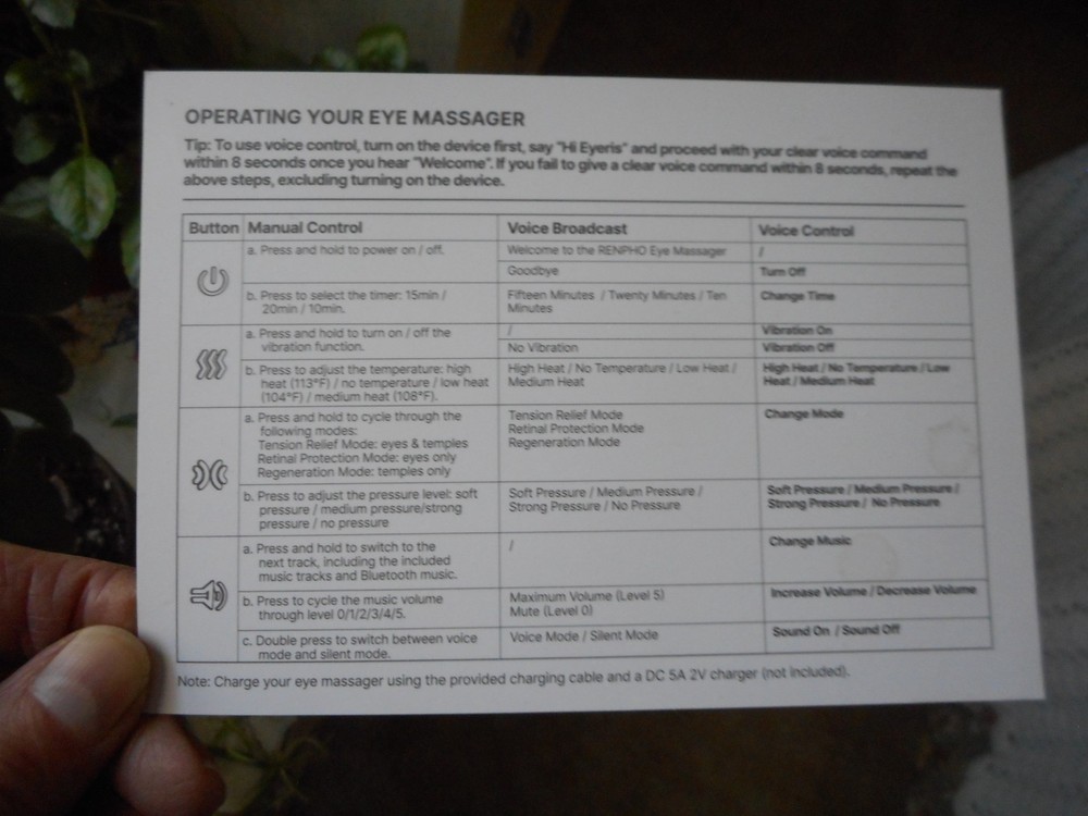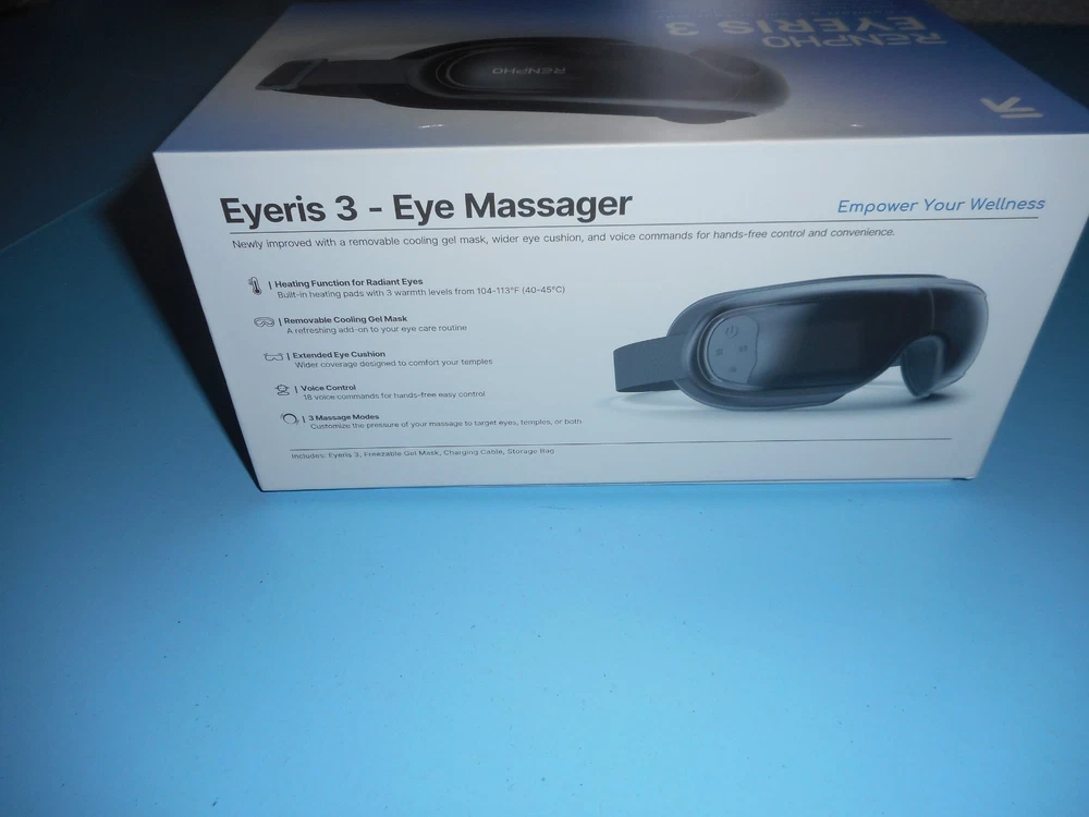 FOR YOUR VIEW: A RENPHO EYERIS 3/ MASSAGER/ VOICE CONTROL/ WARM & COOLING/ 3 MASSAGE MODES/ OPEN BOX. GIFT FROM A FAMILY MEMBER /USED ONCE. WORKS VERY WELL. PLEASE CHECK OUT PHOTOS FOR MORE DETAIL.