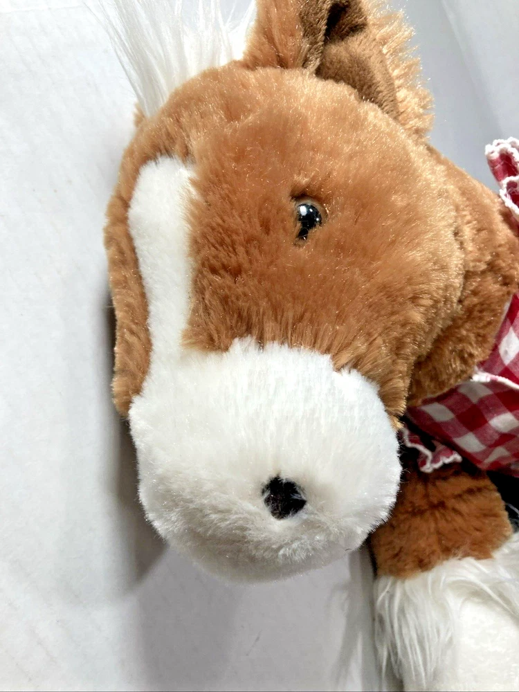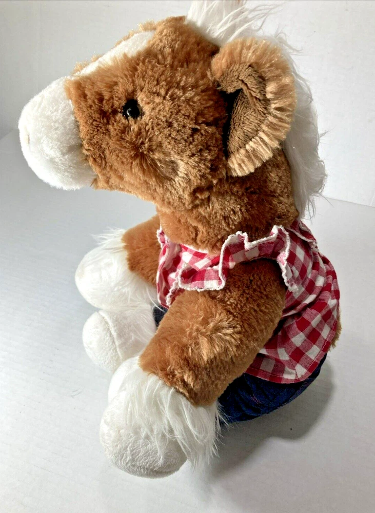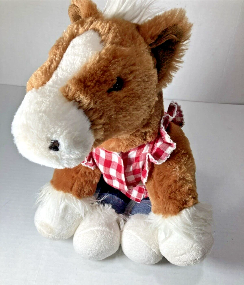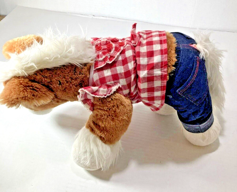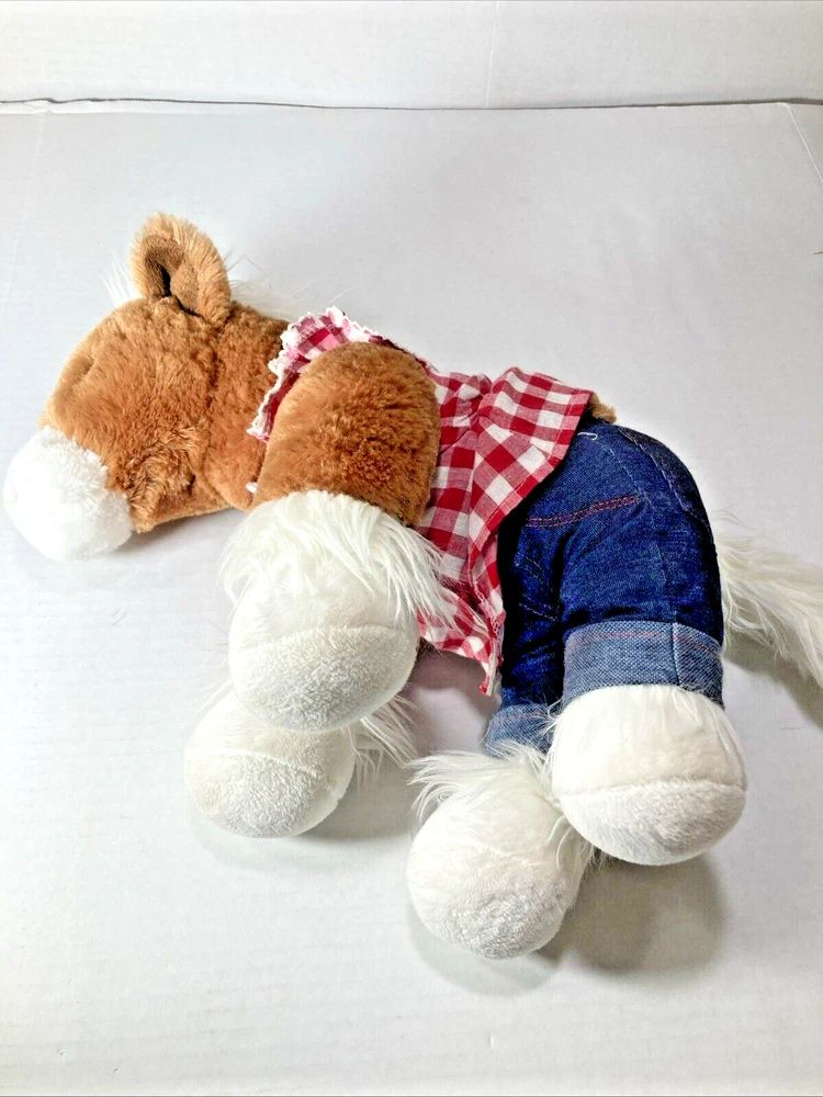 RETIRED - BUILD A BEAR - 16" PLUSH HORSE WITH JEANS AND PLAID SHIRT