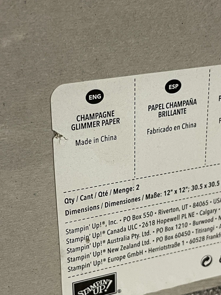 RETIRED Stampin Up CHAMPAGNE GLIMMER Paper 2 sheets 12”X12” 30.5 X 30.5 CM