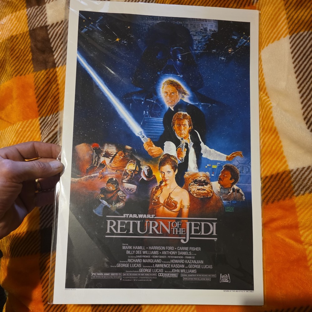 The product is an original international movie poster from the 1983 film "Return of the Jedi" in the Star Wars series. This poster falls under the category of movie memorabilia and entertainment memorabilia, making it a valuable and collectible item for fans of the franchise. The poster captures the essence of the iconic film and is a must-have for any movie enthusiast or collector looking to add a piece of cinematic history to their collection. (STILL IN PLASTIC)