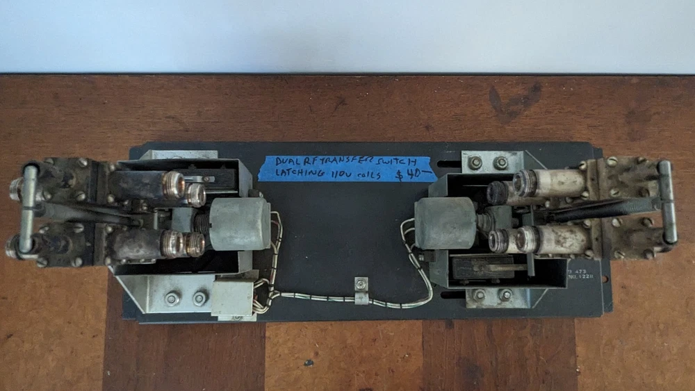 DUAL RF Transfer Switch latching 110V coils dimensions : 19 x 6.5 x 9.5" Coming from estate sale. Untested, sold as is. ** We ship via USPS to 50 States (excluding APO/FPO) or UPS to 48 States in USA only. ** Please make your payment within 48 hours after the auction ends. ** We will ship within 48 hours (excluding weekends) after the receipt of your payment. ** Please email us if you purchase more than 1 item. We will try to combine the shipments whenever possible. ** If any questions, please contact us before your bidding. ** If there is any problem with the shipment, please contact us ASAP before you leave a feedback. T H A N K Y O U