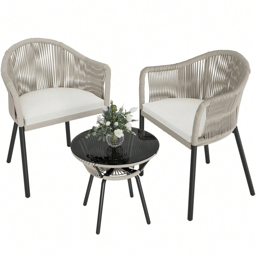 This patio set is a game-changer for outdoor relaxation! The white PE rattan looks elegant and durable, while the cushions add just the right comfort. Perfect for small spaces, it’s stylish yet functional—great for morning coffee or evening chats. Easy to assemble and surprisingly sturdy, it’s a fantastic value for the price!