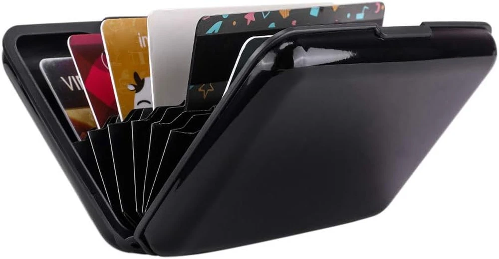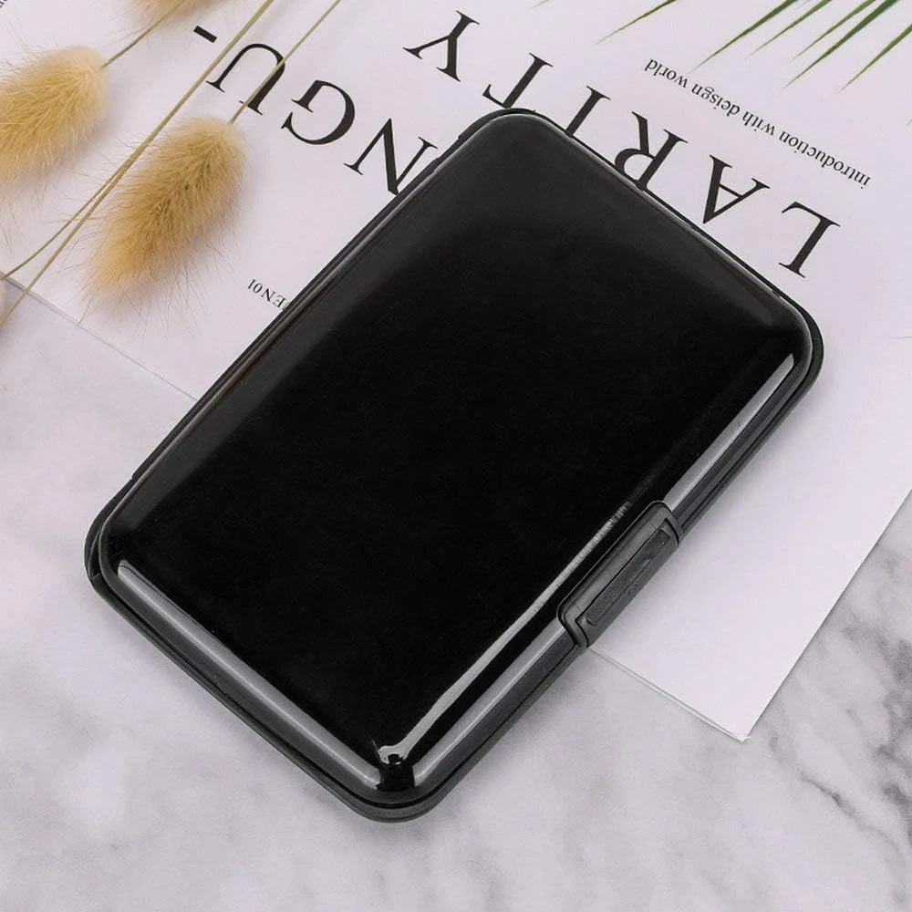 This sleek aluminum card holder is a lifesaver! Blocks RFID scans effortlessly, keeping my cards safe from digital theft. Super sturdy yet slim enough to fit in my pocket—perfect for travel or daily use. Holds multiple cards snugly, and the brushed black finish looks professional. A must-have for anyone worried about security!