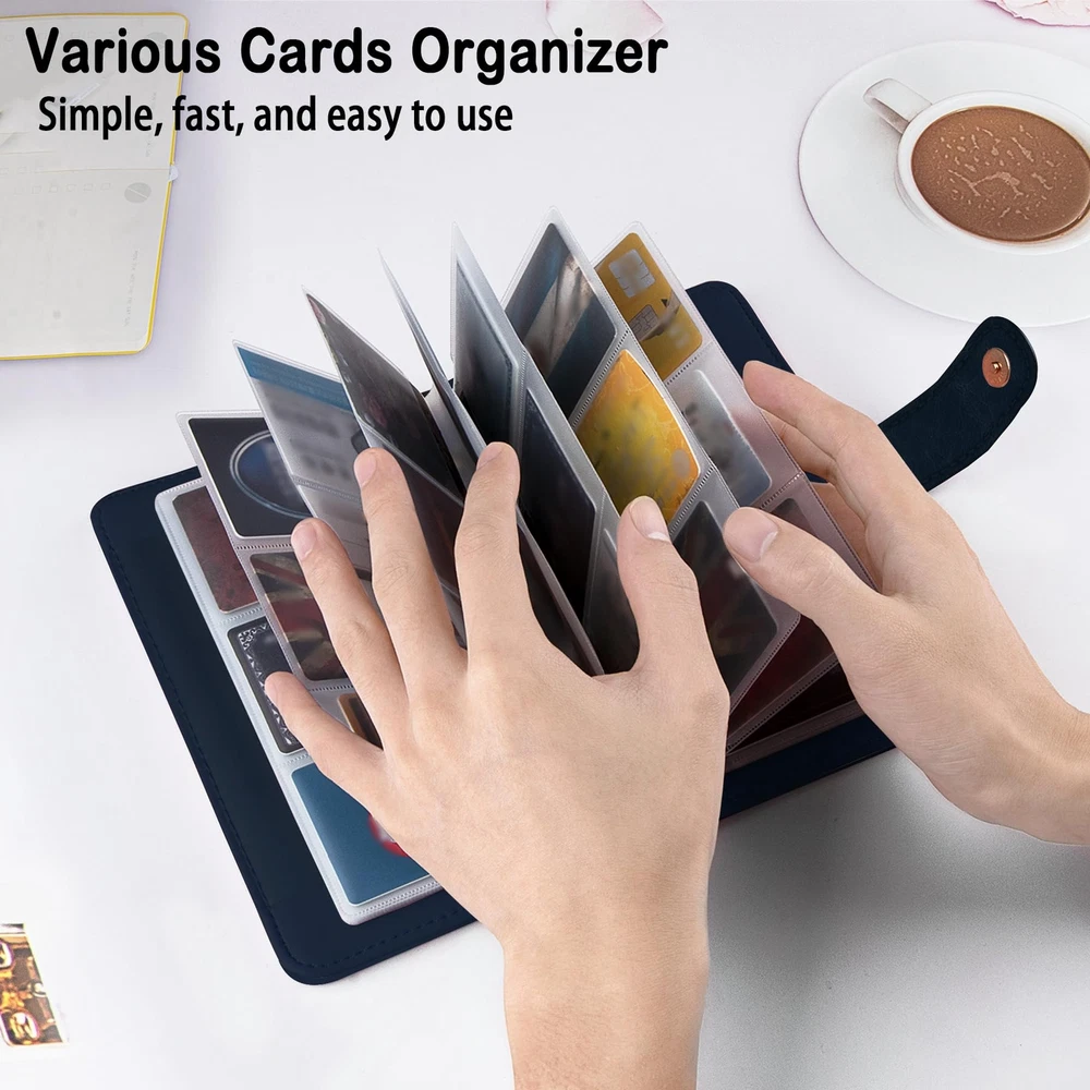 【Premium PU Leather】100% brand new! Made of premium PU leather materials. Various styles for you choose - Solid color and elegant printed patterns. Designed with pretty and delicate patterns, applied excellent printing technology to ensure color vibrant. It can be a good gift for your Friends, Family or Colleagues,etc. If there is any further questions please feel free to us. 【Multipurpose and Large-capacity】For the size details please refer to our size chart photo in the listing. Book binder style with large capacity which has 32 card slots can holds 192 pieces business cards. You can keep credit cards, debit cards, ID card, etc. to prevent loss and damage. Book style is easy to carry and you can find your cards easily. 【Super Material】We use the best material for our products, premium faux leather for business card holder /credit card organizer ,durable thick PVC slots can organize your cards very well. 【Pratical Design】The Card Organizer book with 96 Card Slots, which can holds 96 Credit Cards or up to 192 Business Cards well , with a sturdy magnetic clasp keeps all cards in place without loosening. And the translucent PVC Card pages make it find and read card information easily, aslo easy to insert and take out. 【Best Gift】With various printed patterns and sweet solid color designs, you can use it as a gift for birthdays or holidays, such as Christmas, Easter, Valentine's Day, etc. I believe that your friends and relatives, who receive the well-made, fashionable and beautiful Business Card Holder set, will surely like it very much!