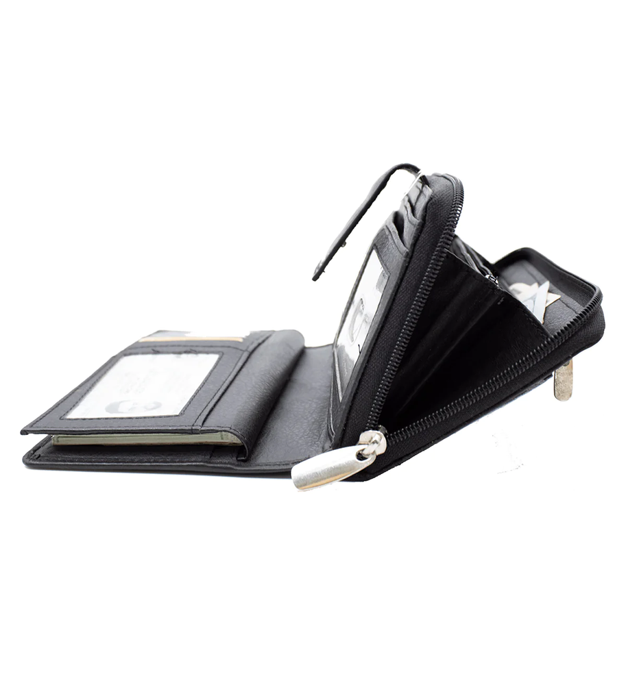 Features: Material: Genuine Leather Best Quality material with a lot of Compartments Length: about 7.25" x 3.25" approx. Inside Detail: more than Credit card holders, picture ID, Checkbook Slot, other Money Note inserts. Inside Zippered compartment