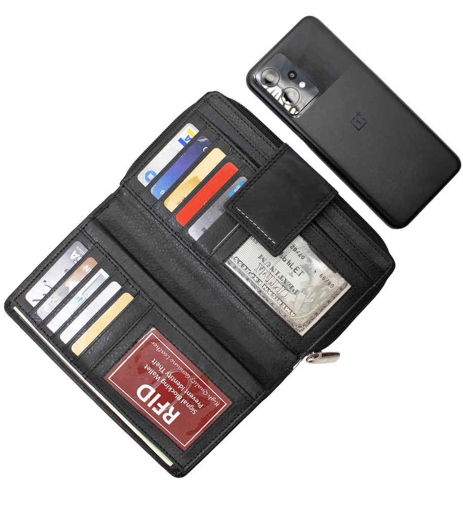 This RFID-blocking leather wallet is a game-changer! The genuine leather feels luxurious, and it’s packed with smart compartments—perfect for cards, cash, and even a checkbook. The zippered section keeps essentials secure, while the sleek design fits easily in any bag. Love how it protects my info with RFID blocking, and the size is just right—not too bulky but holds everything. Highly recommend for style and function!