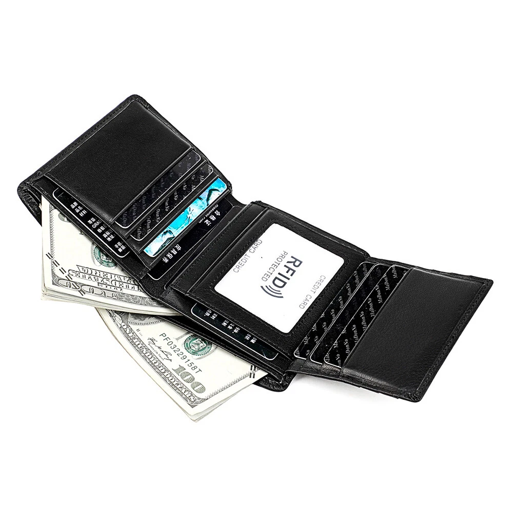 Description: The RFID wallet is made of Faux Leather,which is smooth,soft environmentally friendly,wear-resistant, durable,lightweight and portable,The wallets are delicately stitched, flat and firm, with no loose stitches, which minimizes reduce the rate of le ather getting stretch and peeling off. Structure:13 Bank card pocket,2 Mezzanine Position,1 photo Holder. Perfect choice for men, Men and boys. It is also a ideal gift on Birthdays, Anniversaries, Valentines day, Christmas, Father's Day, Graduation or other special occasion. Material : Faux Leather Colors: Bl ack/ Brown/ Coff e e S ize: 12cm*9.5cm*1.5cm(4.72"*3.74"* 0. 59") Note: 1. There is 2-3% difference according to manual measurement. 2. Please note that slight color difference could be acceptable due to the light and screen. Package Included: 1 X Men's Wallet Without Box.