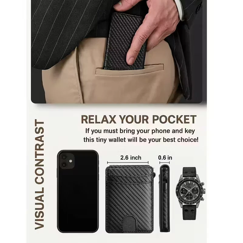 Upgrade your everyday carry with a Slim Carbon Fiber Pop-Up Bifold Wallet built for men who value style, speed & security . The one-touch pop-up card ejector gives you instant access to your cards with a smooth press — no bending, pulling, or fumbling. ⚡💳 Stay protected with RFID-blocking technology that helps guard your personal information from digital scanners. 🔒 The carbon fiber finish delivers a sleek, modern look, while the metal money clip holds your cash securely — all in a slim profile that fits comfortably in any pocket. 🔥👖 Whether for everyday use or travel, this wallet is built to perform, last, and impress — making it a perfect gift for any man. 🎁 Key Features 🔒 RFID Blocking Security – Helps defend against wireless card theft ⚡ Pop-Up Card Ejector – Quick, smooth access with one press ✨ Slim & Minimalist Profile – Ideal for front-pocket carry 💎 Carbon Fiber Style Finish – Premium look & durable feel 💵 Integrated Money Clip – Keeps cash neat & secure 📂 Bifold Layout – Extra storage without the bulk Why Men Love This Wallet ✔ Modern, clean, and stylish ✔ Cards access in seconds ✔ Works for casual or business fits ✔ Built durable for daily carry ✔ Slim — no pocket bulge Perfect Gift For 🎁 Boyfriend 🎁 Husband 🎁 Dad 🎁 Son 🎁 Groomsmen 🎁 Birthdays, Christmas, Father’s Day, Valentine’s Day A gift he will actually use — every single day. Specifications Capacity: 5–7 Cards + Cash 💳💵 Design: Pop-Up Bifold with Money Clip Material: Carbon Fiber Style + Alloy Card Mechanism Style: Minimalist, Slim, Travel-Safe ✈️ Upgrade your wallet game today. FREE & Fast Shipping. Quality Guaranteed. 🚚✨