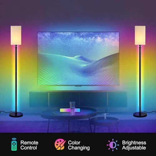 RGB Corner Floor Lamp with APP/Foot Switch/Remote Control, Modern LED Floor