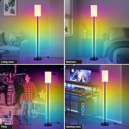 Menu 1. We require immediate payment. 2. We currently accept payment via eBay managed payments only. 3. Once payment is cleared, we will dispatch your shipment within 1-3 business days. Please refer to the "Shipping" tab for more information regarding shipping speed to your destination. RGB Corner Floor Lamp with APP/Foot Switch/Remote Control, Modern LED Floor Lamp with 16 Millions DIY Colors & 256 Scene & Music Sync, Color Changing Standing Lamp for Living Room, Bedroom Product description 【Dynamic Alluring Lighting Effects】 The color changing floor lamp creates 16 million colors and 256 dynamic scene modes, which will display multi-color effects simultaneously and switch lights modes according to different scenes, create different atmosps for you. The animated multi-color effects of our led floor stand lamps can decorate your bedroom, living room, game room,dormitory or office. 【Color Changing & Stepless Dimmable】Our LED Living Room Floor Lamp is 1500 lumens, 10%-100% Brightness can be adjusted smoothly. 256 Dynamic modes, speeds are adjustable, you can customize your lighting to match any mood or occasion 【Remote Control and App Control】 You can control your corner floor lamp with remote control, or scan the QR Code on the lamp pole to download the app and control the floor lamp remotely.You can easy choose your favorite colors, rhythmic modes, brightness even the lighting speed from any corner of your room. Cycle through static colors or dynamic color-changing scenes, enjoy multiple dynamic scenes like Cheerful, Romantic, Festival, or DIY your favorite lighting modes. 【Extra lampshade with E26 Base】 You can not only use it as a smart led Dynamic light, but also take it for a floor lamp. This corner floor lighting can service you well when you need to read some books or need it at night for sleeping, it has an extra E26 base socket(Max 60W) and elegant white lampshade on the Top, which is simple and classic design makes it a perfect fit for any area in your home or office. (Bulbs not included). 【Important Tips About Installation】Step1 is to assemble the lamp pole, Step 2 is to install the RGB LED light strip onto the lamp pole, but Do not Connect any wires sockets. Step3 is to rotate and tighten the lamp pole to the Base. At the end, connect the wires of the LED light strip under the Base to prevent the wires from being twisted or short circuit. PLEASE MESSAGE US IF YOU HAVE ANY OTHER QUESTIONS, AND MANY THANKS FOR READING ALL OF THIS. Copyright ©#. All Rights Reserved.