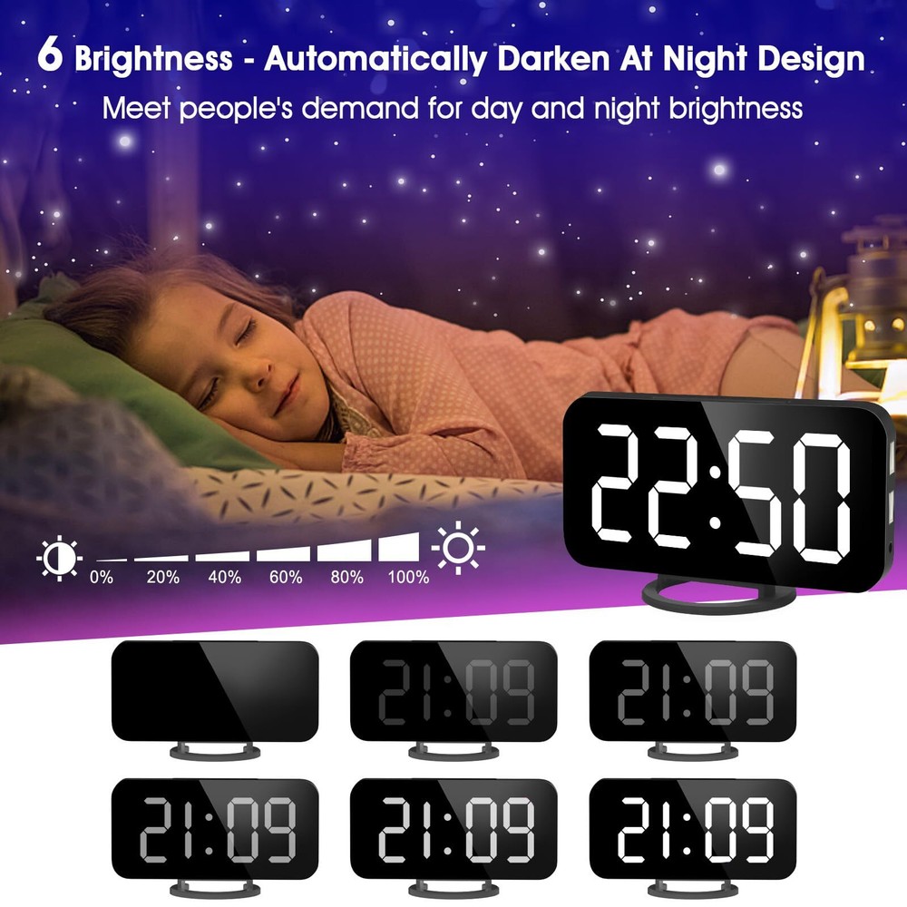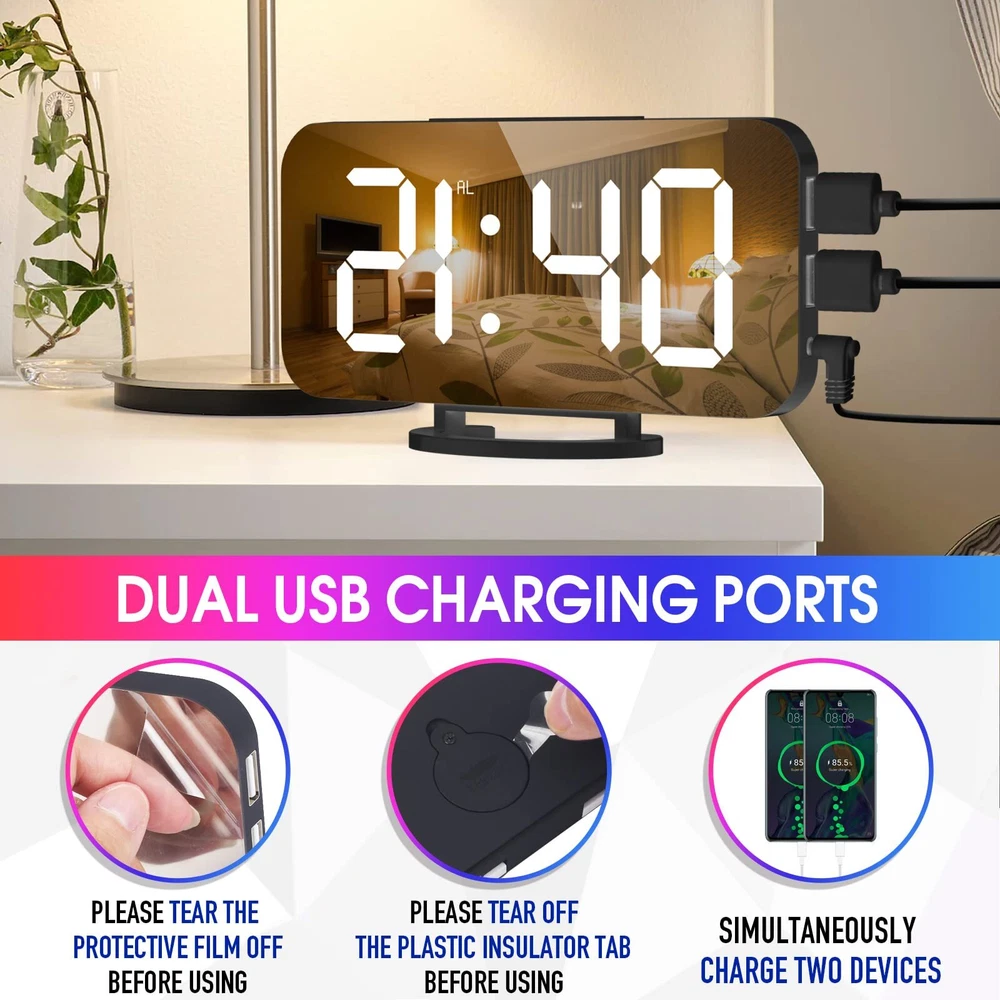 RGB Digital Clock - LED Alarm Clocks Large Display Mirror Surface with Dual USB Ports for Modern Decorations Aesthetic Home Bedroom Living Room Office and Wall Decor - Black ⏰RGB COLORFUL DISPLAY - RGB digital alarm clock with 11 color display modes (4 dynamic modes + 7 fixed modes) to increase the visual experience. You could change the display color mode by pressing the big button on top. Simple and atmospheric appearance, very suitable for living room, bedroom, office etc ⏰NEW 6 LEVEL BRIGHTNESS - This Led alarm clocks is equppied with a light sensor and 6-level brightness display. You can manually adjust the brightness, or turn on the automatic adjustment mode, this electronic digital clock will automatically dim the brightness according to the brightness of the room. (Level-1: 0% brightness, level-6: 100% brightness) ⏰LARGE MIRROR SURFACE - You can clearly see the time within 30 feet, digital clock with a 6.5" HD large display and mirror surface. Ladies and girls can use this mirror clock for makeup, men and teens for shaving etc. Stylish and functional ⏰DUAL USB PORTS & BIG SNOOZE BUTTON - Alarm clock dual USB ports design allows you to charge two devices at the same time. Big snooze button helps you turn off the buzzer easily, allowing you to get 5 to 60 minutes (settable) of extra sleep time 💝GREAT GIFT - You can imagine several scenarios, a RGB color-changing mirror clock in the party, a led clock that changes brightness according to the brightness in the bedroom or office. It will be a perfect gift for your friends and family 👨❤️👨100% SATISFACTION GUARANTEE - You will get: 1 x Digital Alarm Clock + 1 x USB Charging Cable + 1 x Product Manual + 30 Days Unconditional Money Back/Exchange + 1 Year Warranty. If you are not satisfied with any of our products, please contact us by email and we will provide a solution within 24 hours. The lowest is very dim for sleep, the highest is so bright that you can't miss it in the room and it's a so modern decor in your house. SHIPPING Domestic Buyers - We have confidence in our products, but if you are not fully satisfied please contact us within 30 days of purchase and you will get full refund. - We ship within 3 business days of payment, usually sooner - We offer FREE shipping on all orders! - We only ship to the lower 48 states, no APO/FPO addresses or PO Boxes allowed International buyers – please note: Import duties, taxes, and charges aren't included in the item price or postage cost. These charges are the buyer's responsibility. - Please check with your country's customs office to determine what these additional costs will be prior to bidding or buying. * Order Cancellation Policy ** You can return a product for up to 30 days from the date you purchased it. 1. The seller reserves the right to cancel the special case only due to eBay cancellation fee. 2. The decision of seller is the final. 3. The seller will respond to the cancellation request within 2 business days. Please wait for the result of cancellation. 4. In case the cancellation is not completed by some reasons, the buyer can follow the options below to get the refund. 4.1 The buyer can reject the item when it arrives. 4.2 The buyer can send the item back to the seller within 30 days If the buyer receives item (USA Shipment ONLY). The seller will provide the FREE return label to the buyer when the buyer opens " Return Item" case on eBay by using the reason as "Change my mind" ONLY. 5. When buyer has placed the order. The order will be processed and completed by automatic warehouse system within 5 minutes. In case that buyer sends the cancellation request after 5 minutes of placing the order, the request will be rejected. **Sending direct message to cancel the order is not allowed for every case.* Return Policy For the return case - If buyer would like to return the items for refund or replacement, please CONTACT SELLER to receive the free return label from seller. The refund or replacement will be processed with the tracking number of return label which is provided by seller only. The other ways of return which are not approved by seller will not be processed for the refund or replacement.