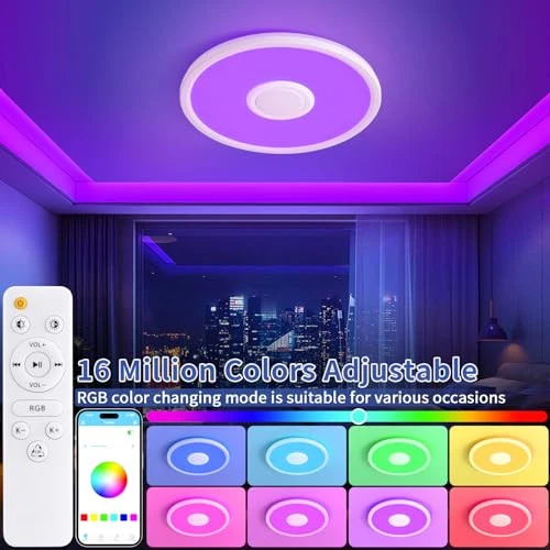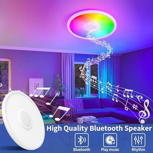 Menu 1. We require immediate payment. 2. We currently accept payment via eBay managed payments only. 3. Once payment is cleared, we will dispatch your shipment within 1-3 business days. Please refer to the "Shipping" tab for more information regarding shipping speed to your destination. RGB LED Ceiling Light, with Bluetooth Speaker, 24W 11Inch Smart Music Ceiling Lamp with App and Remote Control, 3000K-6500K Color Changing Lights Fixture for Child Bedroom Bathroom, White Product description Bluetooth Speaker: This bluetooth speaker light boasts an embedded 5W Bluetooth speaker, effortlessly syncing with your smartphone. You can freely choose the music, podcast or books you want to listen to, making them ideal for bath enjoyment, kid’s bedtime stories, and family carnival parties. Colorful RGB Lighting: With 16 million RGB colors and 12 preset scenes, you can even create your own custom scenes. Featuring a color temperature range of 3000K-6500K (Warm, Natural, Cool) and smooth dimming from 10%-100%, this multi-purpose and versatile ceiling light fixture adapts to your mood and desired ambiance. Memory Function & Time Setting: Simply keep the light on for over a minute, then off for 15 seconds or more, and it will retain your settings upon reactivation. This round dimmable ceiling fixture also features a timer function, ideal for children, the elderly, and night breastfeeding. Smart LED Ceiling Light, Smart Control: Utilize the provided remote and mobile app to manage your smart music light. Tailor the light color, brightness levels, color temperatures, and RGB settings to your liking, anytime, anyw. Effortless Installation: Our 11 inch ceiling light arrives with a hanging wire rope and all necessary accessories. Simply rotate to install and you're done in 10 minutes. The hardwired flush mount ceiling light fits most junction boxes. Secure & Energy-Efficient: Our 24W LED ceiling lamp employs high-quality SMD2835 lamp beads, offering superior brightness while conserving up to 85% of energy. The high-quality, fire-resistant plastic shell prevents potential risk of electric shock, leakage, or disasters caused by electrical short circuits. PLEASE MESSAGE US IF YOU HAVE ANY OTHER QUESTIONS, AND MANY THANKS FOR READING ALL OF THIS. Copyright ©#. All Rights Reserved.