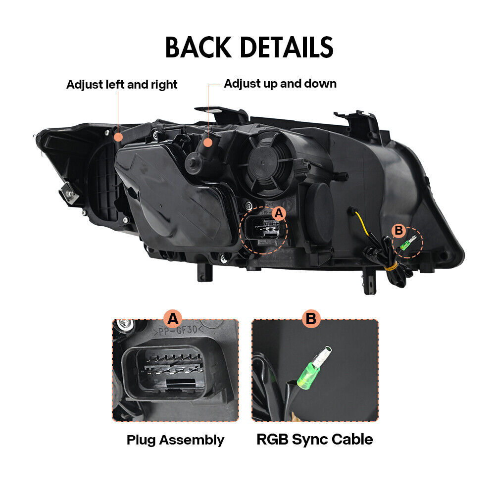 RGB LED Headlight For BMW 3 Series E90 E91 2005-2012 Start Animation Head Lamps Fitment: Fits for 2005-2012 BMW E90/E91 models. Does NOT fit E92/E93 or Coupe versions. Choose Your Version : Halogen Version: Both headlights use a "silver bowl" (reflector) housing. Xenon Version: 1.Outer light is a glass lens, inner is a "silver bowl" reflector. 2.Both the inner and outer layer light sources are glass lenses. Check for AFS ( Xenon versions only): AFS = Adaptive Headlights. The beams swivel when you turn the steering wheel. How to check: At night, see if your headlight beams turn when you steer. Or, check your vehicle's settings/menu for "AFS". Please tell us if you have AFS. Ordering: Please include in order notes: Model + Version + With/Without AFS. Unsure? Contact us with your model year & headlight photos. Product Specs: Condition: 100% brand new. Installation: Plug and play. Bulbs: All LEDs are pre-built. No extra bulbs needed or possible to replace. Product Name:LED Headlight Compatible For BMW E90 Warranty:One Year Tail Light Voltage:12V-14V Start-up:Several Seconds of Animation Lights Source:LED Lens Color:Clear Full LED with sequential turn signal Direct Fit Replacement Lens Material:Polycarbonate Position:Rear Install Method:Plug and Play Unique and cool colorful RGB light effect animation RGB COLOR CHANGE, it can be restored by remote control Fuction: Daytime Running Lights Sequential Turn Signal High/Low Beam RGB Color Change Package Including: 1 Pair of Headlights (Driver and Passenger Sides) Note: 1.Please confirm whether this car-lamps can fit your car before you purchase, if you are not sure, please contact us. 2.Using your factory supplied connector/harness will avoid cutting or modifying any wires. 3.Benefits of LED making you safer on the road for other road users to see. 4.Professional installation recommended for optimal performance Customer Support: 24/7 Support - Questions answered within 24 hours (except weekends/holidays) 1-Year Quality Guarantee - Contact us immediately for any issues Payment Delivery details After sales Contact us For tips Payment We only accept payment via eBay. Please make sure your eBay address is correct before you pay. Insufficient information will delay the order process so please read the invoice carefully during checkout. Delivery details To United States: 3-6 business days. Package will be sent out within 24 hours after the pament is received. Pick-up is unsupported servise. We will not be responsible for any delivery failure due to unclear address. Delivery is not available on weekends, public holidays or after business hours. After sales After-sale If it happens that the lights get moisture after you install them on your car, it would be normal for first time using. You just need to keep using for a period of days, the moisture will disappear. because there is inner air cycling in the lights as we design. As for headlights, you can also open the cover of low/high beam so that the moisture will out more quickly. If the moisture still exist, please feel free to send us message for help, we will try our best to help you. After you install, if you find that there have function does not work, please check if the harness is connected correctly, and exchange the left and right , If it still does not work, please rember take some photos or videos, please feel free to contact us. We will appreciate if you can takes some pictures or videos about your problem, and also send us the barcode of the products(every product we sell has a barcode on the backside of the light and outside of the package, it's very important for us to find the problem) If you open a request or case optionaly before communication, it would be hard for us to serve you. Contact us If you have any problem, please contact us or leave message for us for free. We will reply at once when convient. Don't worry, we always here waiting for your and like to help you. For tips There are some tips for you: 1. If There are any problems with the product, please contact with us before leaving any feedback or raise any dispute. 2. If you are in our exclusion countries. Please write to us for shipping .If When the goods arrive, please check them carefully 3. If you find that the goods have been damaged, please be sure to refuse to collect the goods and ask the courier to return the goods to us. If the goods are damaged, please do not collect. 4. If the item you have ordered is defective, contact us within the warranty period, we will replace the defective item for you with an item of equal functionality at first. 5. If buyer do not want neither replacement nor partial refund, but want returning,buyer should be responsible for all the returning ship charges.