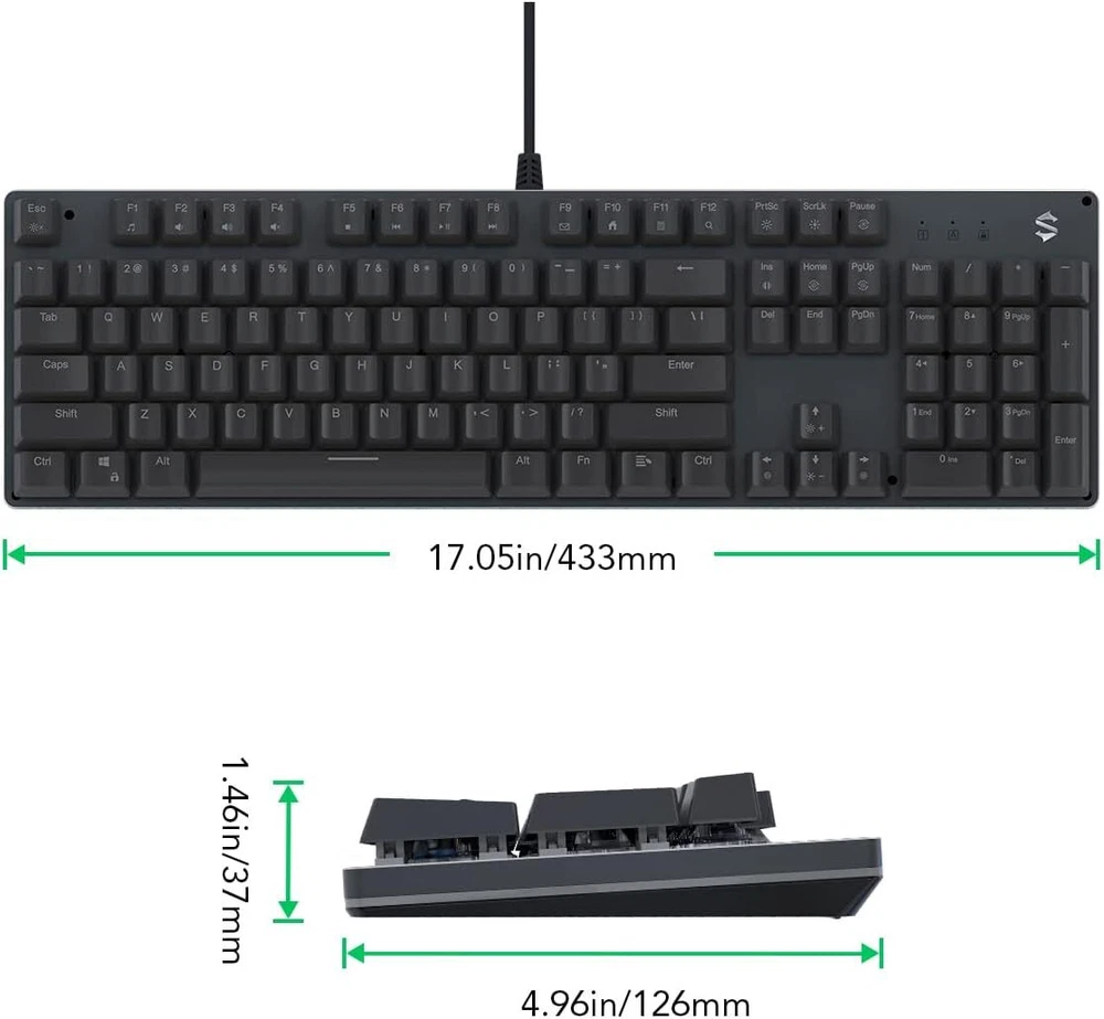 Product Description RGB Mechanical Gaming Keyboard LED Backlit Wired Keyboard with Blue Switches, Fully Programmable, Anti-Ghosting 104 Keys for Desktop PC, Sixgill K2 【RGB Illuminated Keyboard】The mechanical keyboard features key backlight and surrounding light bar. There are 12 different backlight effects, 5 pre-set gaming lighting modes (re-customizable) and 3 sidelight effects. Equipped with optional 8 single colors, 7 levels of backlit brightness and move speed. 【Responsive Blue Switches】The classic mechanical blue switches deliver accurate, responsive key commands and offer precise tactile & audible click feedback for solid keypresses. Up to 50 million keystroke lifetime ensures long-term performance for gaming and typing. 【N-Key Rollover & Programmable】The PC gaming keyboard is with fully conflict-free 104 keys that ensures the accuracy for simultaneous key presses during intense gameplay and fast typing. All key can be reassigned and macros can be created for effortless operation. 【Ergonomic Design & Metal Panel】The game keyboard is design with ergonomic Arc layout, suspended key and foldable stands that offers comfort typing angle and experience. The aluminium alloy panel with matte-finish texture is sturdy and ensures longer product service time. 【Multiple Functions & Wide Compatibility】The computer keyboard also has 12 multimedia key combinations and Win-Lock function for efficiently gaming or working. Plug & play, no need driver. Universally works with Windows 7 / Windows 8 / Windows 10 / Windows XP. About Us We are a reputable seller with many years of experience selling on eBay. Our goal is to provide high-quality products and excellent customer service. Shipping Items will be shipped within 1-3 business days when we received payment. (Orders are not processed on weekends & holidays) Tracking information will be sent once item is shipped. Delivery time depends on destination and other factors Item is shipped to ebay address. Leaving correct address can minimize delay. For international shipping and shipping to Guam, Hawaii and Alaska, Please contact us before placing the order. International buyers please note: Import duties, taxes and charges are not included in the item price or shipping charges. These charges are buyer’s responsibility. We will try our best to reduce the risk of the custom duties. Local pick-up is unavailable at the moment. Contact Us We reply any email messages within 1 business / working days(off-duty at weekend). If you do not get a response from us, then please check your junk or spam mailbox. Our Business hours: Mon-Fri 9:00-18:00, UTC/GMT +8 hours. Please contact us either by clicking "contact seller" in the "purchase history" section or simply click "ask a question" at the bottom of this page. If you are unsatisfied with our item or service, please contact us before leaving any feedback. We are committed to resolve all issues in a friendly and satisfactory manner.