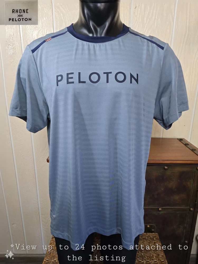 An Incredible one time opportunity to own this collector RHONE x Peloton Swift Short Sleeve Lt. Gray Performance Shirt Men's Sz XL ***No remarkable defects ***PIT TO PIT IS 23 in ***VIEW ALL MEASUREMENT PHOTOS FOR PROPER FIT**** Explore the in depth photos showing every angle possible as if you have it in your hands. Thank you from all of us at DPACTIVEXPRESS ***Note 1: Display stands not included with all items unless specifically stated in the title. ****Note 2: DPACTIVEXPRESS carries a diverse collection of brands in this category, so we take a pit to pit measurement photo. ~~~~~~~ITEM IN THE LISTING PHOTOS IS THE ITEM YOU WILL RECEIV