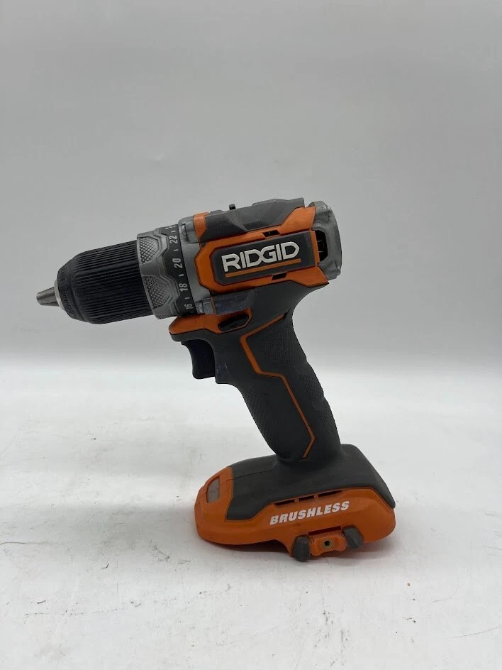 RIDGID 18V Brushless Drill/Driver – Lightweight, High-Performance Power Tool Upgrade your tool collection with the RIDGID 18V Brushless Drill/Driver , designed for maximum efficiency and power in every job. Engineered with a powerful brushless motor , it delivers 500 in./lbs. of torque and a variable speed range of 0-450 / 0-1,750 RPM , allowing you to tackle a wide variety of tasks with precision. This model is 15% lighter and 25% more compact compared to the RIDGID R86114 18V Brushless 1/2 in. Drill/Driver , offering enhanced maneuverability without sacrificing performance. Its 22-position clutch ensures that you can adjust the torque for different applications, while the 2-speed gearbox lets you optimize both power and speed for any project. LED lighting adds extra visibility for work in low-light environments, making this tool ideal for all types of jobs, both indoors and outdoors. Plus, it's 100% compatible with all RIDGID 18V batteries, tools, and chargers (battery and charger sold separately). Pair with MAX Output batteries for peak performance. We take great care to inspect all items and ensure they are accurately described. Should you have any issues with your purchase, please let us know immediately. We are committed to resolving any concerns promptly and to your satisfaction. Our small business truly appreciates your patronage.
