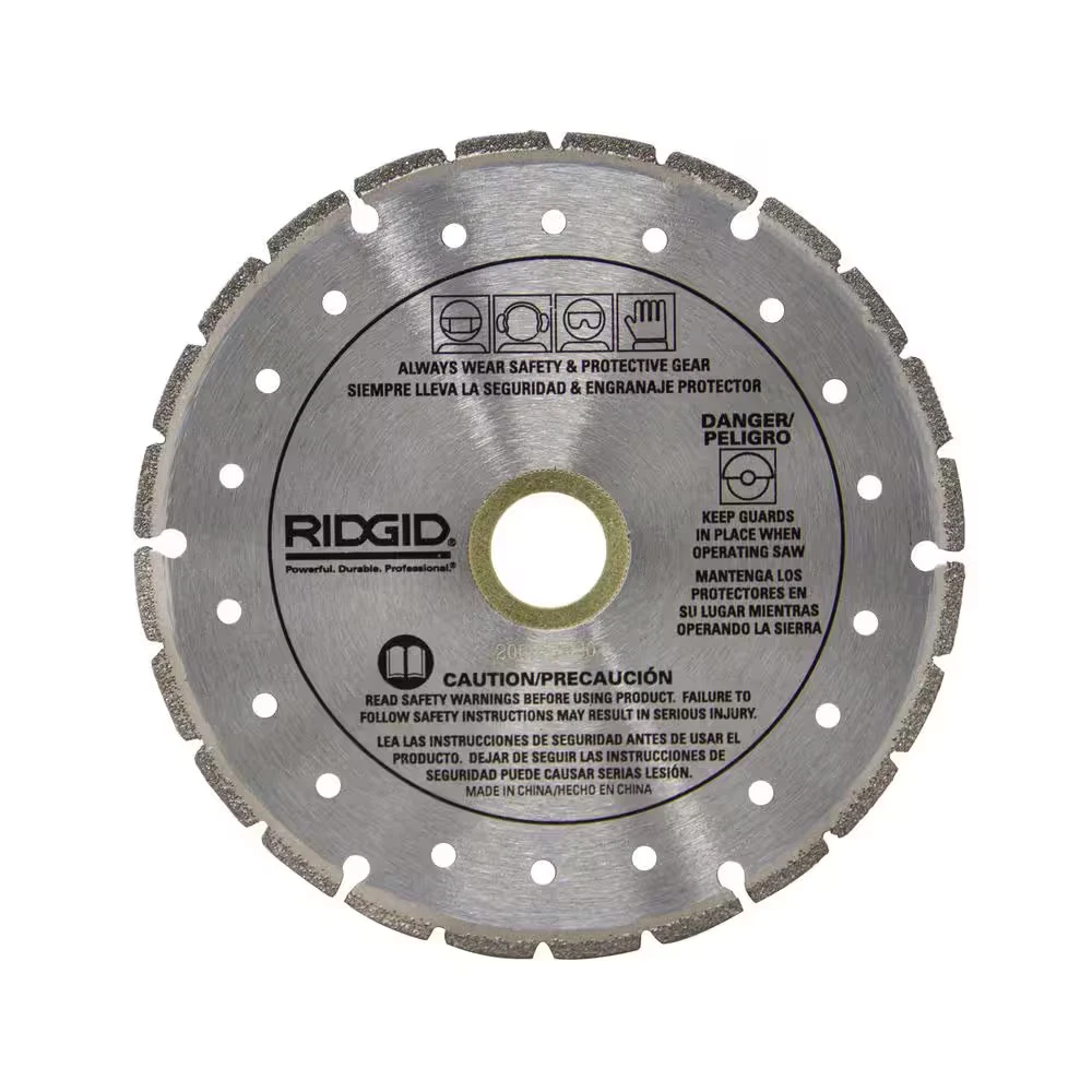 Store New Arrivals Add to Favorite View Feedback Contact RIDGID Diamond Blade Metal Cutting Segmented Rim Angle Grinder Tool 4.5 Inch New Description Blade Type Diamond Color Family Orange Ideally Used With Angle Grinders Material Cut Metal Number in Package 1 Power Tool Accessory Type Circular Saw Blade Returnable 90-Day Rim Type Segmented Saw Blade Material Diamond Teeth Per Inch 0 Tool Type Saw Blade Tools Product Type Power Tool Blade Diameter (in) 4-1/2 in Diameter (in) 4.5 in Heavy-duty blade that outlasts abrasive wheels For use with angle grinders Cuts hard, dense metal including rebar, conduit and copper pipe Now cut metal like never before Introducing the new RIDGID Diamond Cut Blade, with up to 70x more life. Now a single blade can outlast as many as 70 abrasive discs, giving you the lowest cost per cut. It's great on rebar, copper pipe, galvanized pipe, conduit, square steel tube and angle steel. Engineered with the Diamond Cut Advanced Metal Cutting Technology, this RIDGID blade will rip through hard dense metal and mild steel at fast cutting speed and will make quick work of all your metal cutting jobs. Unlike traditional abrasive discs that shrink with use, the new RIDIGID Diamond Cut Blade maintains its size and consistent cutting depth, even after a thousand cuts. No more changing discs every few cuts. Fewer blade changes mean less downtime, allowing you to finish your job much sooner. The solid steel core makes it safer to use and you'll get fewer sparks, dust and debris too. For use with angle grinders For cutting rebar, conduit pipe, copper pipe and steel angle Does not shrink like abrasive wheels Max RPM 13,300 Dry cutting ABOUT US We offer the best prices around on high quality products. Our E-store includes tools, general home, garden items and more. SHIPPING We are always working hard to ensure your package arrives as soon as possible. Please understand that some factors like weather, high postal traffic, and the performance of shipping companies are outside of our control. We offer free shipping to the lower 48 states and ship within 4 business days of payment, usually sooner. We do not accept P.O. Boxes. Please provide a physical address. RETURNS We offer a 30-Day Return Policy on items which you are not completely satisfied with. You have the option for a full-refund or an exchange of the item. No returns are available on items shipped outside of the USA. PAYMENT We accept PayPal. CONTACT US This page content is yet to come Please ad us to your favorite seller and visit again later Thank You CUSTOMER SATISFACTION We try our very best to make sure every customer is completely satisfied. If there's a problem, message us! We're happy to help. WE ACCEPT Copyright © 2017 AutoDs. | All Rights Reserved