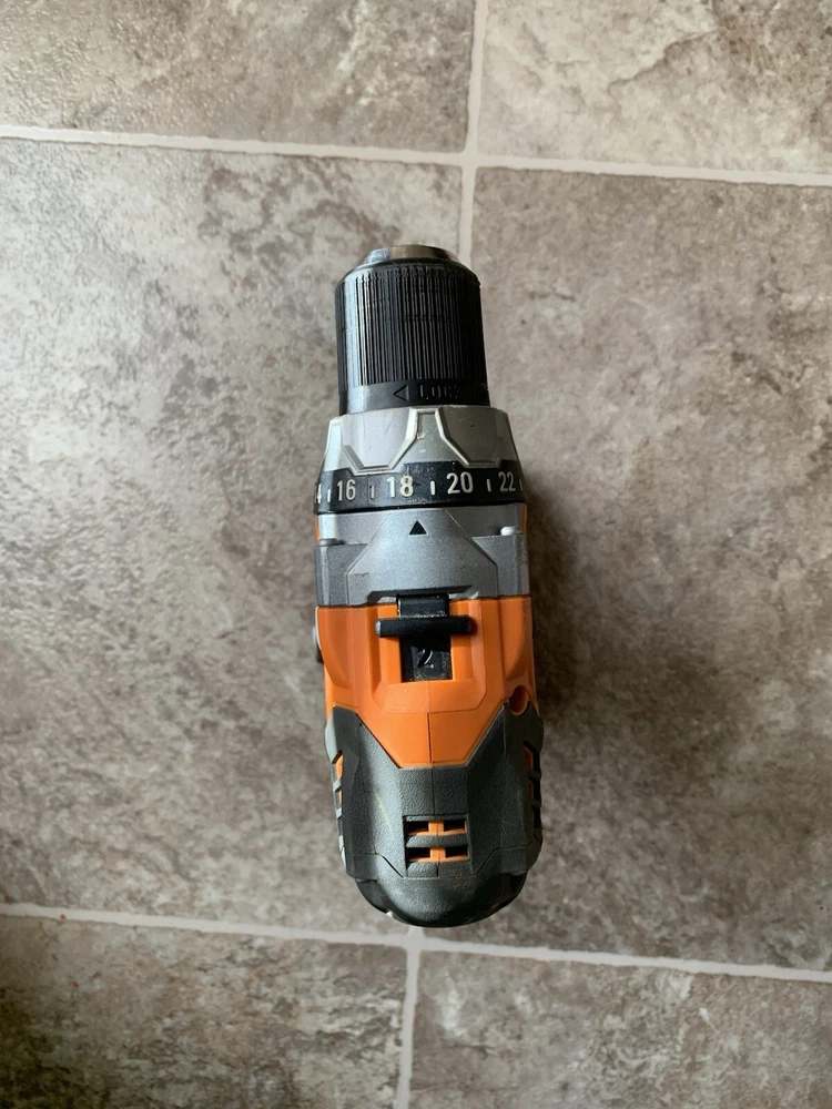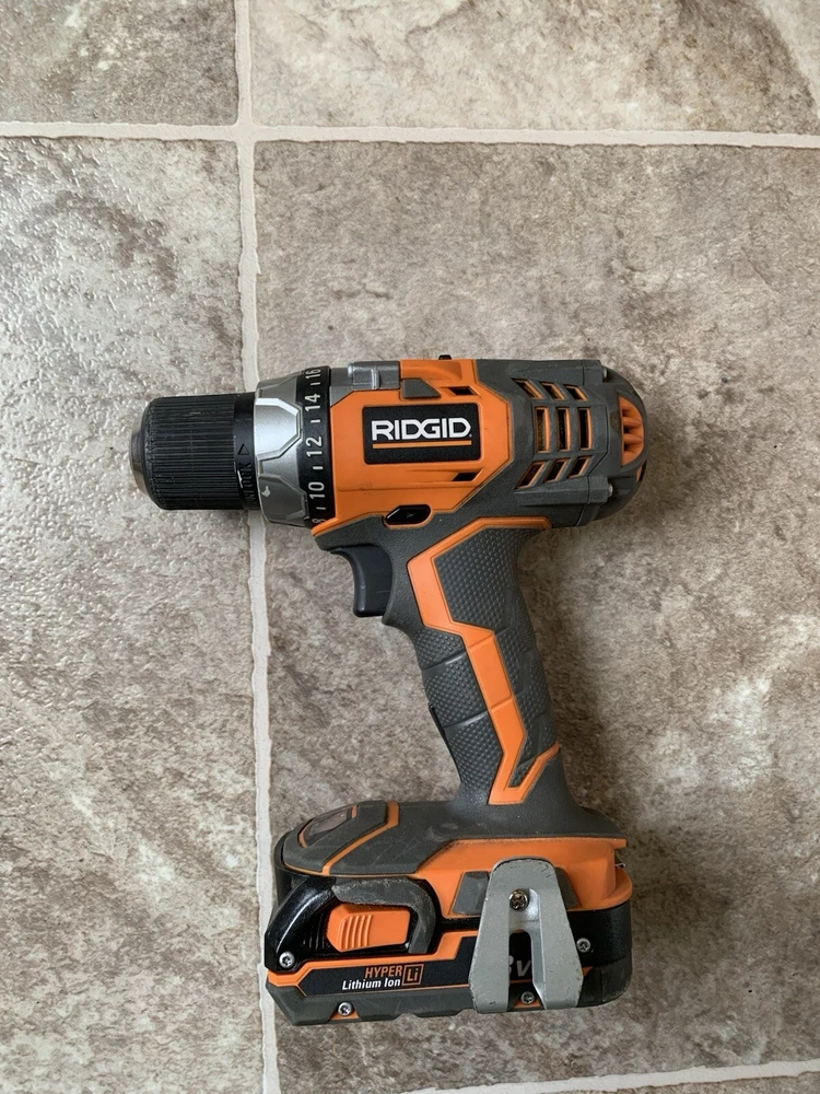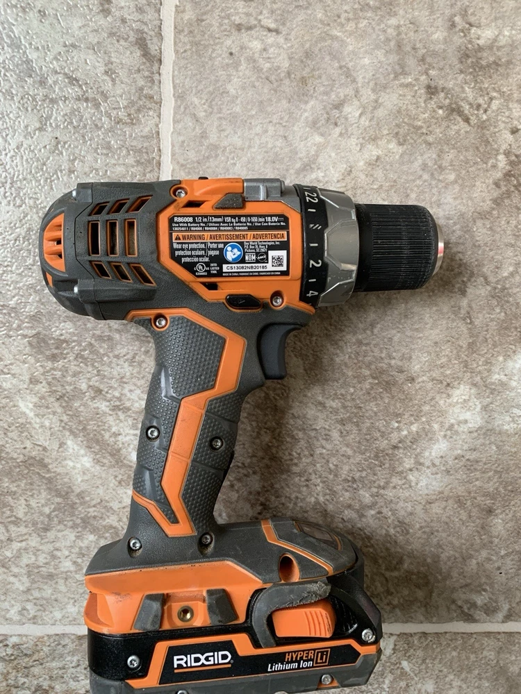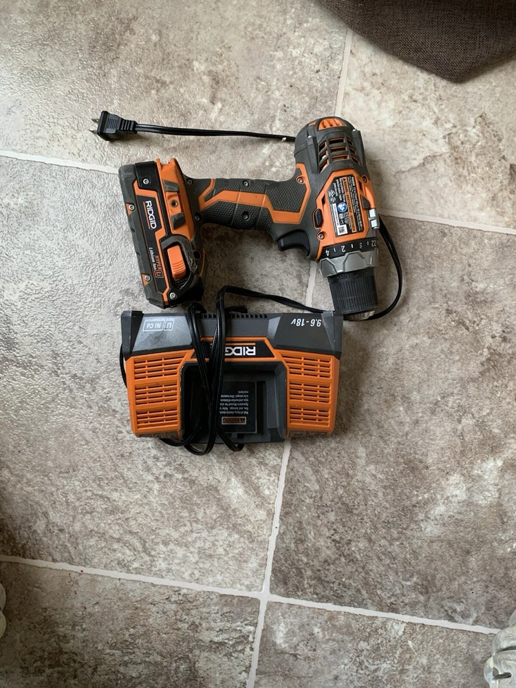 RIDGID Fuego R86008 18V Lithium Ion Compact Cordless Drill Driver - Orange/Black 2 speed 1/2 drill, keyless chuck. Battery and charger is included.