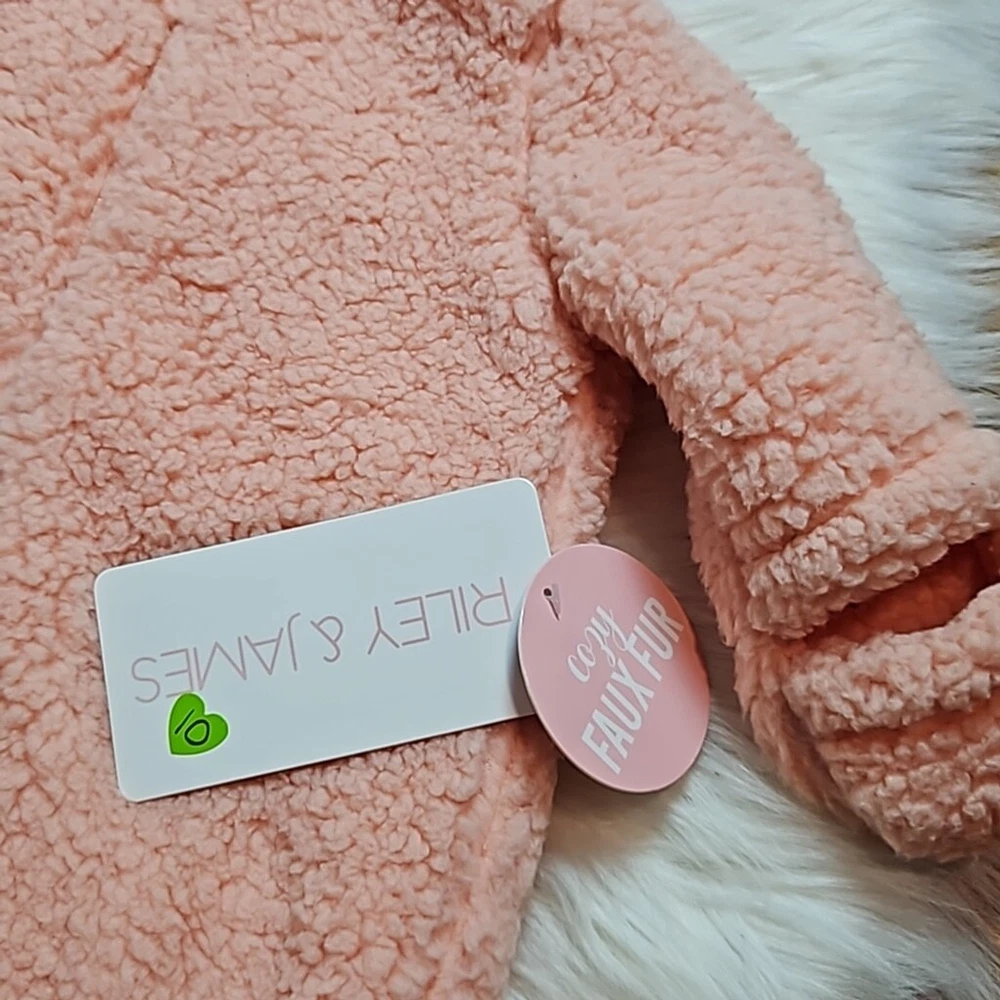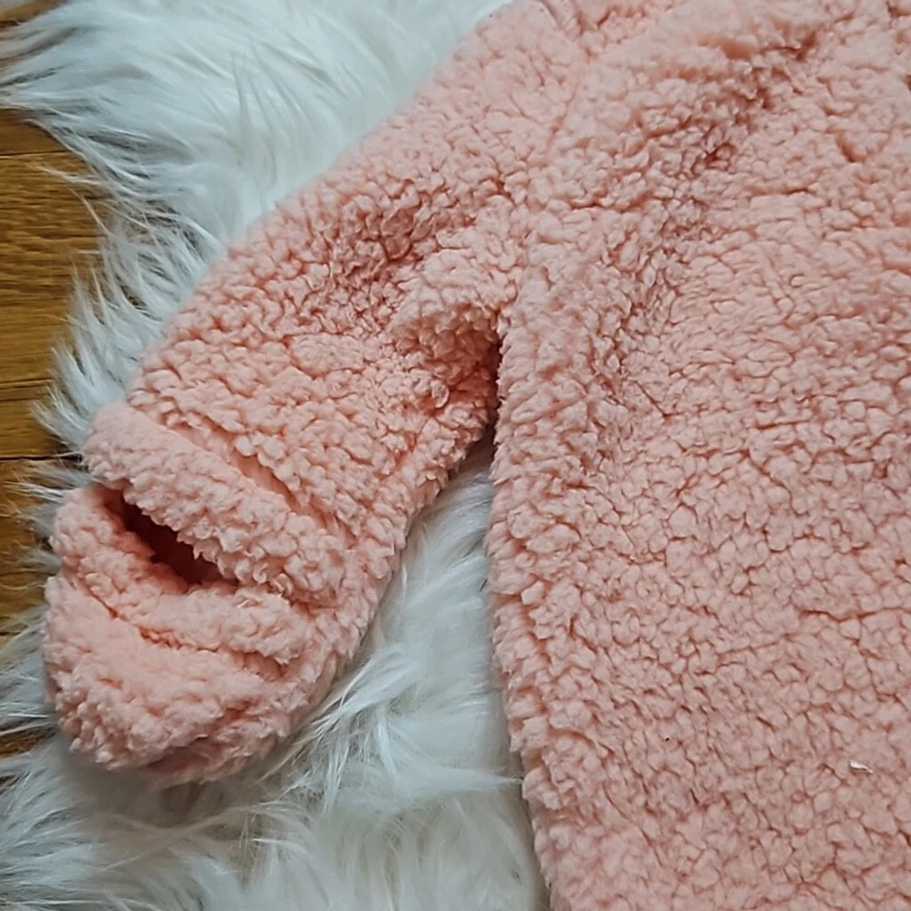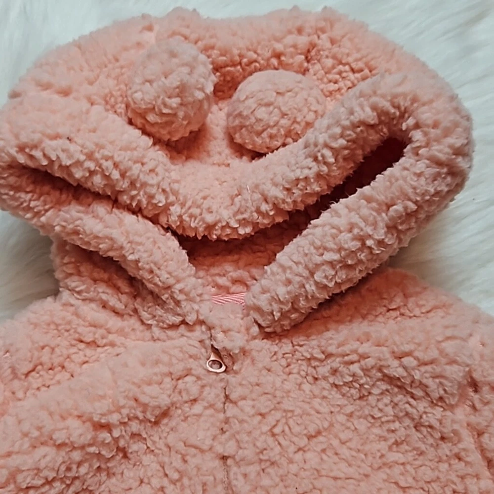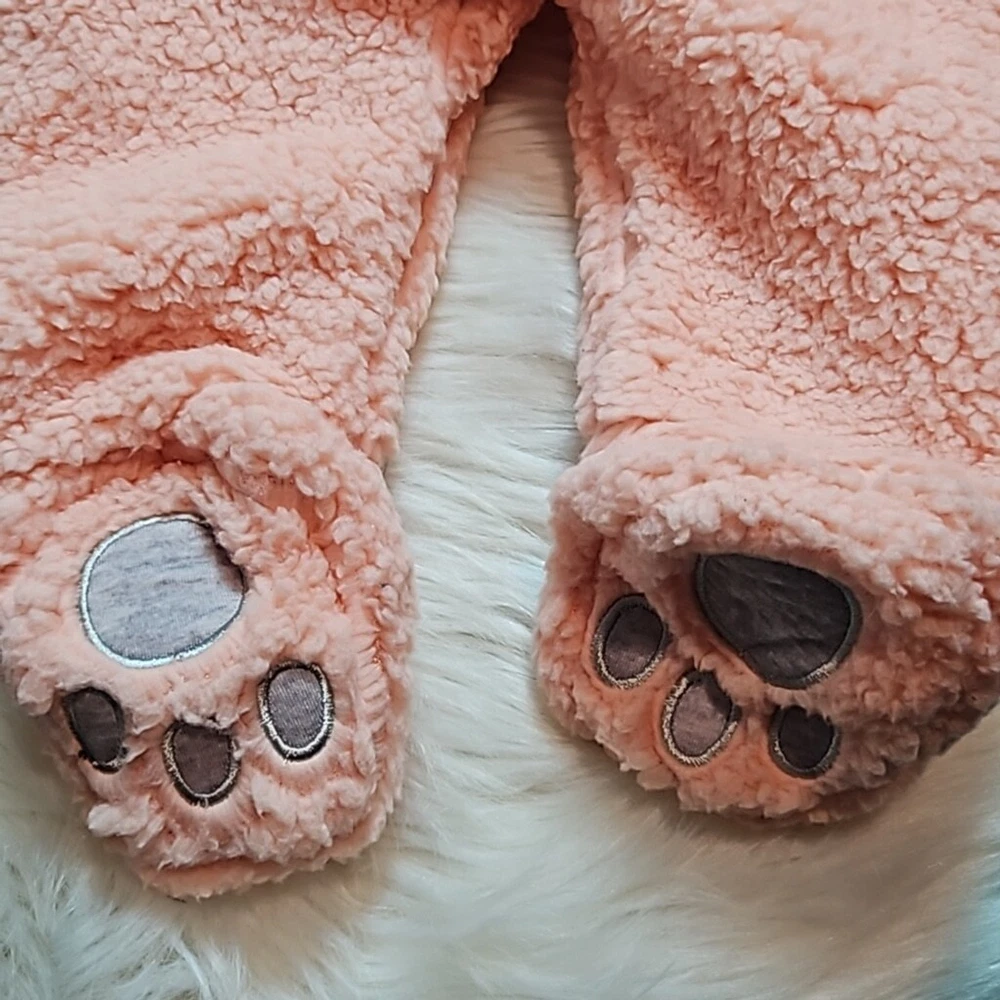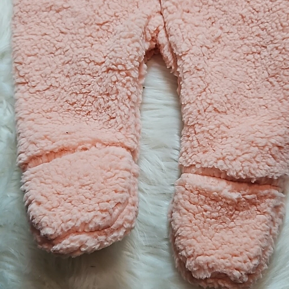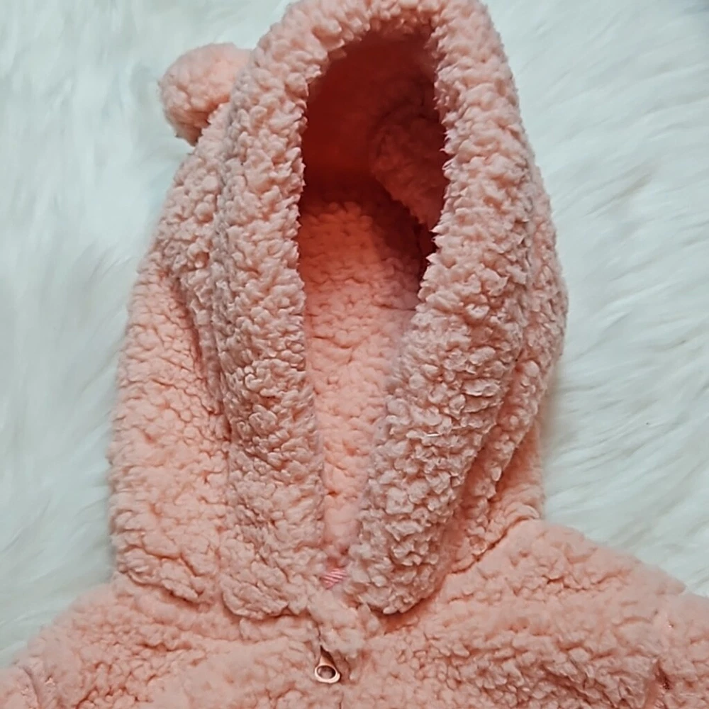 New with tag baby girls size 6 months Pink Bear-Ear Hooded Teddy bear sherpa Footie jumpsuit snowsuit pram suit bunting