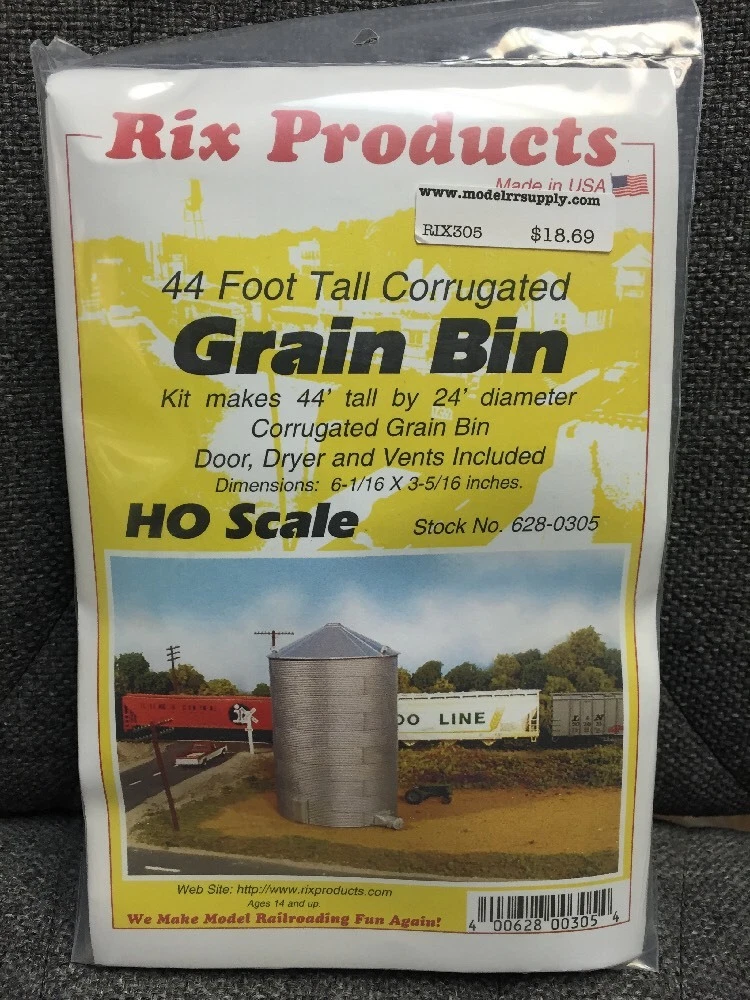 EVERY ORDER now gets a $5.00 coupon code toward your next order! Mountain Subdivision Hobbies modelrrsupply RIX Products #305 HO 40' GRAIN BIN (KIT) The Rix 40 foot Corrugated Grain Bin for HO is designed to represent the popular style of grain bins used by many farmers and companies to store many types of commodities. The Rix Grain bin is made up of 6 band segments which form a complete band. The bands are then stacked on top of one another until they reach the height you wish. Kit includes enough band segment to produce a 40 foot tall by 24 foot diameter grain bin with door and 30 degree peaked top. Molded in a Galvanized color. Also includes roof vents and blower. Photo shows completed model on layout. This is a kit. Safely packed by our staff. __________________________________________________________________ Questions, Special orders, Inventory requests: Please contact us using eBay's message system. Your shipping address : IMPORTANT!! Please confirm your shipping address is correct before making payment. You know where you live, we don't! eBay does not allow us to change an address after payment is made. If you ask us to change address, it will require us to cancel your order, ask you to correct your address and redo order. Combined Shipping: International Due to eBay's new policies, they require us to require immediate payment on your purchase. PLEASE use the eBay shopping cart - it may save you money! In the event eBay overcharges you for shipping, we will send a refund for the correction. Combined Shipping Discounts: USA Due to eBay's new policies, they require us to require immediate payment on your purchase. PLEASE use the eBay shopping cart - it may save you money! If we issue a credit for overpayment of shipping, we may deduct a portion of the overpayment to cover eBay fees. eBay DOES NOT refund the fees we pay based on shipping charges if we issue a refund for shipping! Paid orders may be combined or ship as seperate orders with no shipping refund. USA Shipping: We ship using USPS First Class, Parcel Post, Priority Mail, and occasionally FedEX. We may upgrade your shipping method at our discretion. Tracking is provided. Orders over $750 will require a signature per Paypal rules. International Shipping, Customs Fees, Import Taxes and Duty: We ship USPS First Class International and Priority Mail. It's your choice! There is limited or no tracking on FCI or Flat Rate Priority Shipping. Allow two to ten weeks when choosing First Class International, but it's usually far less. Please Note: Import duties, taxes, and charges are not included in the item price or shipping cost. These charges are the buyer's responsibility. Please check with your country's customs office to determine what these additional costs will be prior to bidding or buying. Don't ask us to falsify a customs form...We will not do it. Insurance: We insure all International shipments and some domestic shipments. Our insurance carrier requires a 20 day domestic (USA) and 40 day International waiting period before we file a claim. You agree to wait the required time and agree to complete a online affidavit for the insurance company if we file a claim for your lost or damaged shipment. Shipsaver is our carrier and they provide excellent service. Handling and Shipping time: WE SHIP FAST! All orders ship same or the next day. In the event of an issue, we will message you via eBay message system. Read our feedback page to see what our customers say about us. Please be aware USA Shipping Holidays may affect International Shipments. Sales Tax: New York Residents will be charged Sales Tax - It's the law. Returns: No returns are accepted on opened items. All items we sell are covered by Manufacturer Warranty. D o not open a return case for defective items, Contact us FIRST, we'll work it out. A restocking charge of 15-20% may apply. We do not refund original shipping charges. Please review the return policy on the shipping tab. Warranty? New or Used?: Everything we sell is brand new and covered by Manufacturer's Warranty unless noted. We will assist you in the warranty process if needed. We only sell brand new items - Our items are all factory fresh! Thanks for choosing Mountain Subdivision Hobbies Supplying modelers with items from premium model railroad & DCC manufacturers since 2002