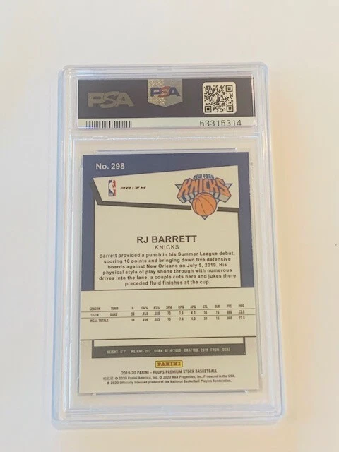 Absolutely awesome and highly collectible RARE 2019 Hoops Green Pulsar sp insert rookie RJ Barrett short print a PSA 9. See all pictures for amazing condition, size, and detail. There are absolutely no returns on graded sports cards as you know exactly what you are getting because it is professionally graded and the market for sports cards changes literally on a daily basis. Check out my store for some of the rarest vintage collectibles online from all eras. Thanks for looking and have a great day! :)