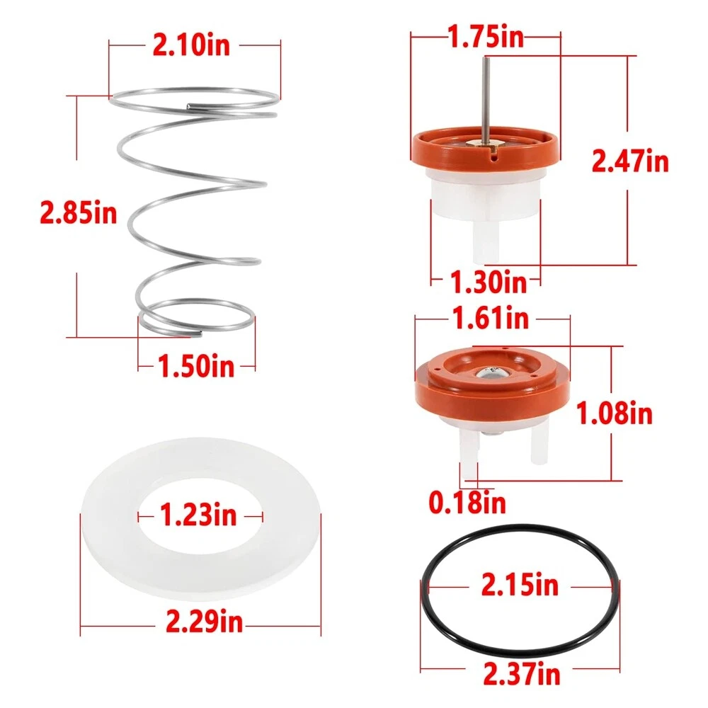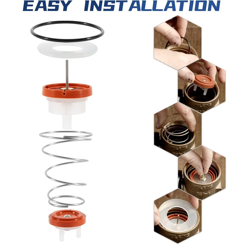 720A Pressure Vacuum Breaker Repair Kit Replacement for 1/2 3/4 1 inch Product Description Fitment:This 720A Pressure Vacuum Circuit Breaker Service Kit is compatible with 1/2 inch, 3/4 inch, and 1 inch. Function: The 720A Series Pressure Vacuum Circuit Breaker Assembly is designed to be installed on the drinking water line to prevent the water stop from backsiphonage into the drinking water supply system. Unless the ball valve or valve body itself is broken, this pressure vacuum circuit breaker repair kit will repair most of the frozen 720A PVB. Material:This product is made of stainless steel, rubber and plastic, which is durable. Applicable Temperature Range: 33 ° F to 110 ° F. Package Included: 2 Packs (1 Pack includes 1*o-ring,1*plastic washer,1*spring,poppet assembly,1*spider sembly). This product does not contain instructions. Fitment: This 720A Pressure Vacuum Circuit Breaker Service Kit is compatible with 1 2 inch, 3 4 inch, and 1 inch. Function: The 720A Series Pressure Vacuum Circuit Breaker Assembly is designed to be installed on the drinking water line to prevent the water stop from backsiphonage into the drinking water supply system. Unless the ball valve or valve body itself is broken, this pressure vacuum circuit breaker repair kit will repair most of the frozen 720A PVB. Material: This product is made of stainless steel, rubber and plastic, which is durable. RK1-720A pressure vacuum breaker kit is installed on the drinking water pipeline to prevent polluted water from back-siphonating into the drinking water supply 1.Includes: Plastic Washer, O-Ring, Spring, Poppet & Spider Assembly. 2.Size: 1/2" To 1" 3.Temp. Range: 33 Degrees to 110 Degrees F 4.Body Material Rubber, Plastic and Steel Easy to install Step 1:Close inlet and outlet shut-off valves before disassembling device. Step 2:Remove canopy screws and canopy. Step 3:Bleed off pressure by opening the No. 2 test Knob. Step 4:Unscrew the bonnet from the body Step 5:Remove the Plastic Washer, O-Ring, Spring, Poppet and Spider Assembly Step 6:After completing inspection, replace necessary parts and reassemble