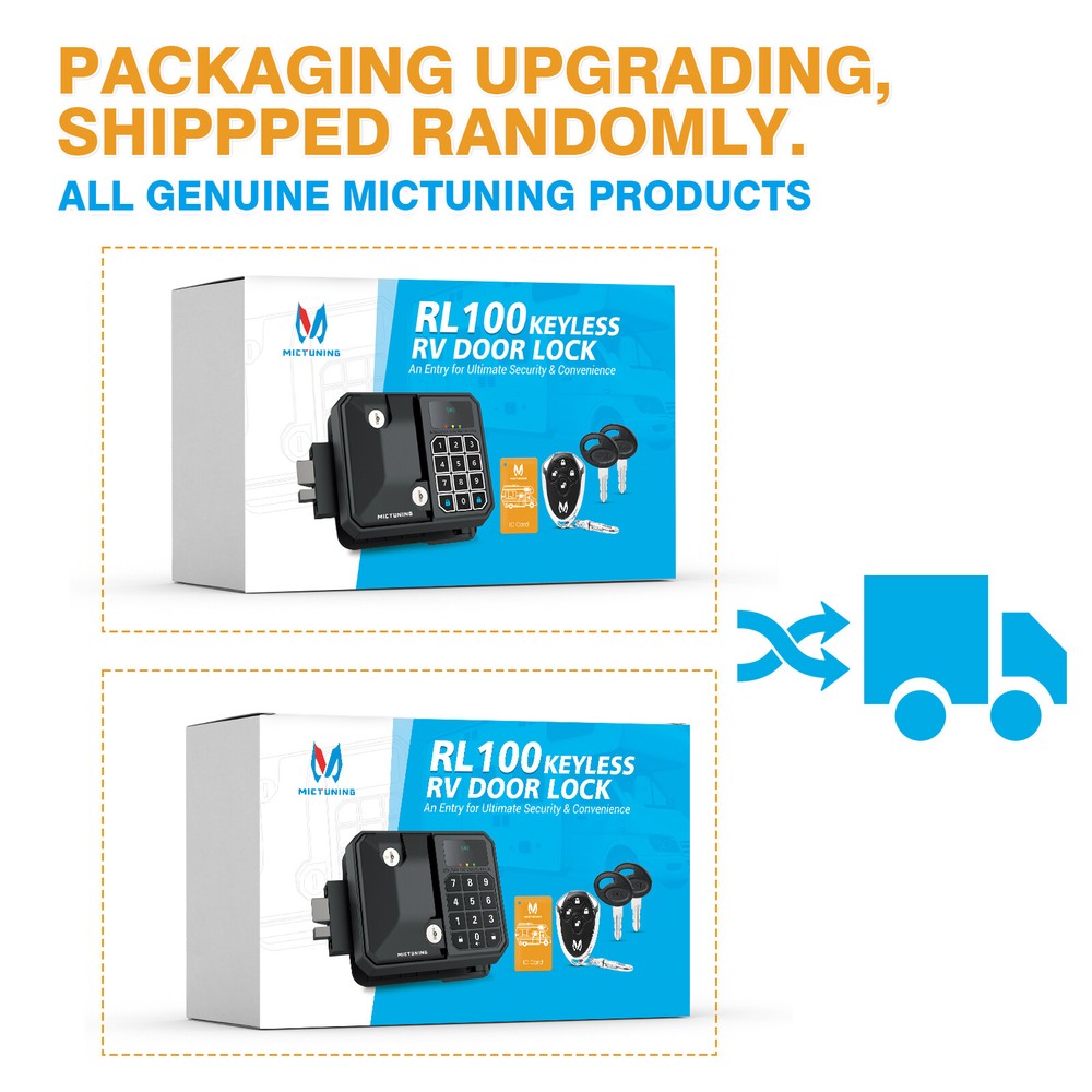 About the Item 1. Check Compatibility - Specifically designed to fit a wide range of Campers, RVs, and Trailers with an Opening Size of 3.75" x 2.75" x 1.5". Please note that this RV lock is suitable for doors with HINGES on the RIGHT SIDE ONLY. 2. Multiple Unlocking Methods - Mechanical Key, NFC Key, Key Fob & Password unlocking options. The included NFC sticker can be attached to your phone, wallet etc. The key fob has sensing range up to 50ft under ideal conditions. (Please keep the 4 mechanical keys safe, as replacements cannot be provided if lost.) 3. Enhanced Security - Safety Lock allows locking from the inside and can ONLY be opened from the outside with a Mechanical Key. Constructed with heavy-duty steel & zinc alloy, it features IK10 Impact Protection, IP65 Waterproof & V2 Flame RL100 RV Keyless Entry Door Lock LED Keypad Password Remote 4 Mechanical Key Set MICTUNING RV Keyless Entry Door Lock, Trailer Entry Latch Bolt Heavy Duty Steel RV Door Lock w/ LED Indicator Backlit Keypad 20m Wireless Remote Control Handle Latch 300 Days Standby - for RV Caravan Trailer Car Campe r 5th Wheels Bumper-Pull About the Item 1. Check Compatibility - Specifically designed to fit a wide range of Campers, RVs, and Trailers with an Opening Size of 3.75" x 2.75" x 1.5" . Please note that this RV lock is suitable for doors with HINGES on the RIGHT SIDE ONLY. 2. Multiple Unlocking Methods - Mechanical Key, NFC Key, Key Fob & Password unlocking options. The included NFC sticker can be attached to your phone, wallet etc. The key fob has sensing range up to 50ft under ideal conditions. (Please keep the 4 mechanical keys safe, as replacements cannot be provided if lost.) 3. Enhanced Security - Safety Lock allows locking from the inside and can ONLY be opened from the outside with a Mechanical Key. Constructed with heavy-duty steel & zinc alloy, it features IK10 Impact Protection, IP65 Waterproof & V2 Flame Retardancy. 4. Sleep Mode - Don't let button or unlocking noises disturb your sleep. Simply long-press the "0" button to activate sleep mode. Pressing "0" again will deactivate sleep mode and restore normal operation. 5. Green/Yellow/Red Indicators - Stay informed with the intuitive LED indicators. A green light confirms successful unlocking, a yellow light indicates low battery power, and a red light alerts you to an incorrect password entry. With an approx. 300 days standby time, you won't have to change batteries often. 6. Satisfaction Defender: Buy with confidence, We stand behind our products all the time, 30 days Money Back/Replacement, Worry-free 24-month Warranty, Within 24 Hours Friendly Response,Lifetime Customer Support (🔑NOTES: Login your account - Choose Your orders - Find the order ID - Click Contact seller) Description Locking & unlocking your door has never been easier with MICTUNING RL100 RV Door Lock - Mechanical Key, NFC Key, Key Fob, or Password – you name it, we've got it! Safety is our top priority, and our lock is equipped with enhanced security features to keep your belongings secure. Worried about noisy interruptions during your beauty sleep? Fear not! Our lock has a nifty sleep mode that ensures you can snooze away without any disturbance. It's time to take your RV security to the next level and hit the road with peace of mind. Don't wait – get your hands on the amazing MICTUNING RL100 RV Door Lock today! Complete Packge: Door Lock x1 Key Fob x1 NFC Key Card x1 NFC Key Sticker x2 Mechanical Key x4 AA Battery x4 Set of Mounting Hardware User Manual x1 Payment Delivery details Pay attention Returns Contact us Payment We accept internet transfer, bank deposit and all major credit cards through Payoneer. If buyer want to delay the payment because of financial problem, please contact us via ebay message within 1 days. If buyers have any problem in payment, feel free to contact us or ebay customers service. Delivery details We ships to worldwide. Shipment will be triggered within 1-2 business days, only after payment is received in full. We do not offer same day or overnight delivery service at this stage. Delivery time is estimated by shipping carrier and may vary depends on the size, location, and natural environment by the time of the delivery. Please understand, we cannot guarantee delivery time and cannot be held responsible for any delay outside of our control. Please contact us for estimated delivery time. Economy shipping: We ship to Order Address Only . Please make sure your address in Payment account is matched with your shipping address before placing an order. We ship worldwide via Air-Mail, 95% of tracking number is available. Expedited shipping: Express Mail Service is available. You need to contact us about this service. Pay attention International Buyers – Please Note: Import duties, taxes and charges are not included in the item price or shipping charges. These charges are the buyer's responsibility. Please check with your country's customs office to determine what these additional costs will be prior to bidding/buying. When you receive item damaged, Defective, not as describe or wrong one, please email us pictures within 24 hours to resolve any problem better and fater: 1. All labels with clear words on the package; 2. The real goods you receive; 3. Different angles of the products and package to show the problem clearly. Returns In case the item is defective, please inform us within 30 days of receipt, we will arrange reship or refund. Buyers have to pay for the return cost and we will pay the cost for resend. Please note we do not accept International Return (For customer who purchase via Global Shipping Program) Contact us If you are unsatisfied with our item or service, please contact us before leaving any feedback. We are committed to resolve all issues in a friendly and satisfactory manner. We always reply to messages within 2 business days (off-duty at weekends). If you do not get a response from us, then please check your junk or spam mailbox.
