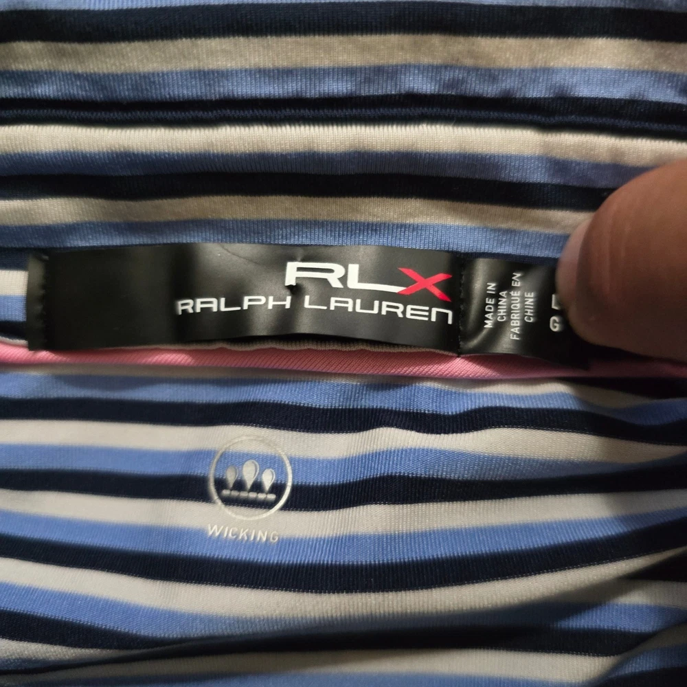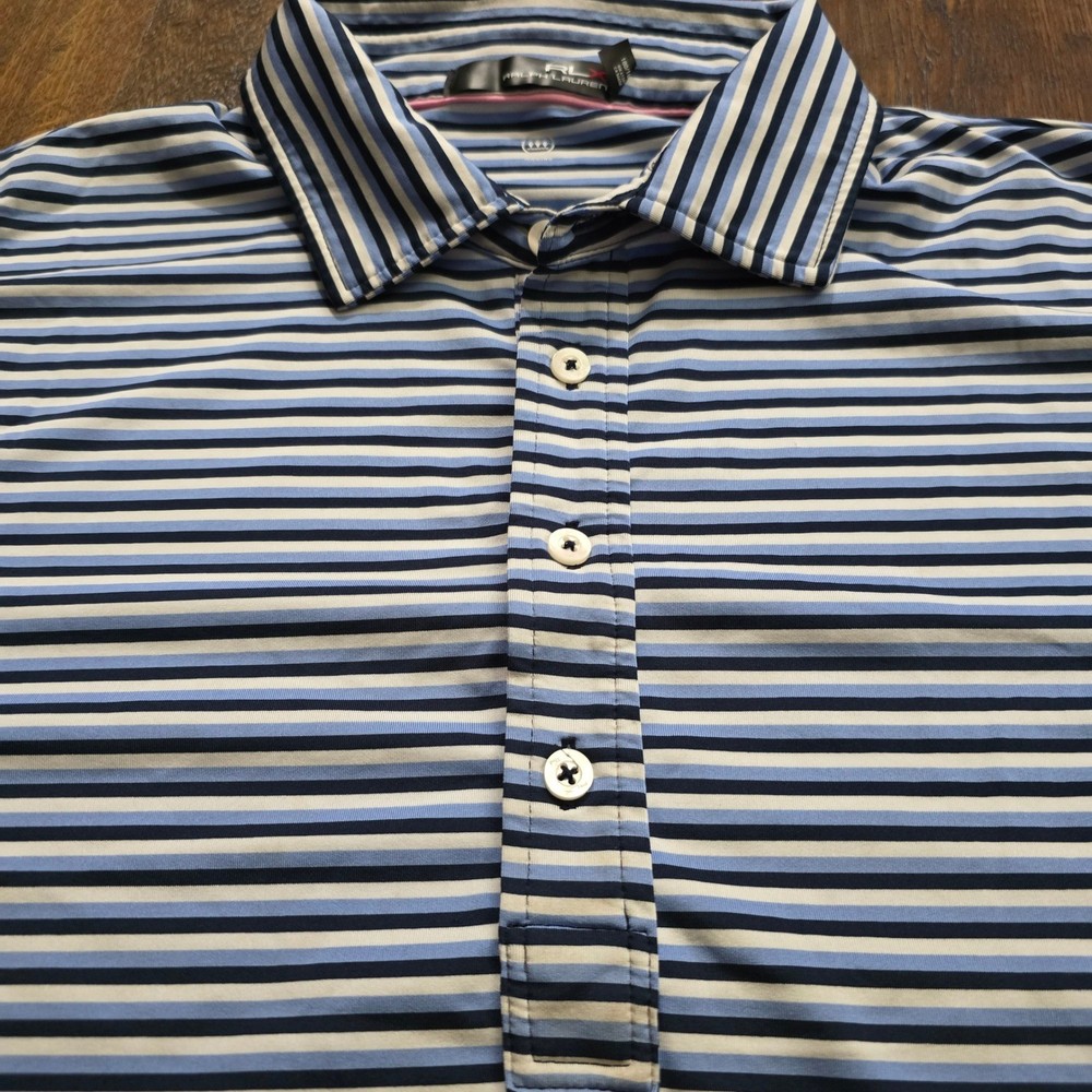 Color: Blue Brand: RLX Ralph Lauren Features: Moisture Wicking, Quick Dry, Lightweight Fit: Regular Product Line: Ralph Lauren RLX Polo Golf Theme: golf Closure: Button Type: Polo Department: Men Sleeve Length: Short Sleeve Size Type: Regular Performance/Activity: Golf Size: L Style: Basic Pattern: Striped Neckline: Collared Model: Ralph Lauren RLX Vintage: No Material: Cotton Blend