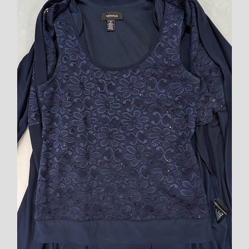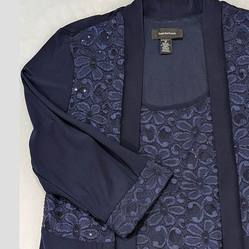 Vintage: No Occasion: Christening, Formal, Party/Cocktail, Wedding Size: 10 Department: Women Color: Blue Garment Care: Hand Wash Only Personalize: No Accents: Lace, Layered, Sequin Neckline: Round Neck Brand: R&M Richards Season: Fall, Spring, Summer, Winter Set Includes: Tank, Cardigan Type: Outfit/Set Size Type: Regular Features: Open Handmade: No Material: Polyester Seller Notes: “No tears, stains or holes, very good pre-owned condition” Fit: Regular Closure: Pullover