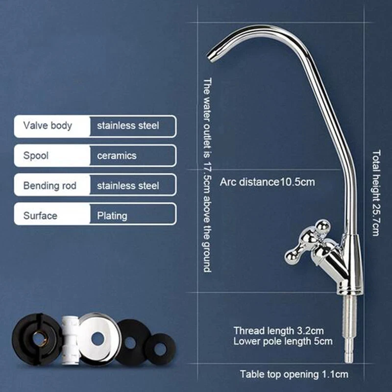 Water Filter Purifier Faucet, Lead-Free Filtered Faucet Fits Reverse Osmosis Units or Water Filtration System Kitchen RO Faucet Gallery Description Water Filter Purifier Faucet, Lead-Free Filtered Faucet Fits Reverse Osmosis Units or Water Filtration System Kitchen RO Faucet Product Introduction: The filter water faucet is made of lead-free as a whole,so the water dispenser faucet is unlikely to get rust, corrosion, and tarnishing during everyday use. the surface is scratch-resistant,oil-free,and easier to clean, ensuring both high-quality and longevity.Best choice for family healthy especially kids. The RO faucet inner wall is smooth and no rust occurred, no dirt, no secondary pollution. The durable ceramic disc creates a perfect sealing effect, drip-free and leak-free performance, thus achieves a good experience of drinking water. The products undergo strict inspections before they leave the factory. 90° Single Lever Handle & 360° Swivel Spout: 90 Degree single lever hand Package Includes: 1 x Drinking Water Filter Faucet 1 x 1/4"Quick Connector 1 x Cover Plate 1 x Rubber Ring 1 x Metal Washer Notification: 1. Please allow 1-2mm error due to manual measurement. Thank you for your understanding. 2. The monitor is not tuned in the same way. The color of the item shown in the photo may look slightly different from the actual object. Please refer to the real thing. Shipping Free Worldwide Shipping Payment Policy Safe and secure payement with PayPal! Return Policy 30 Days returns!