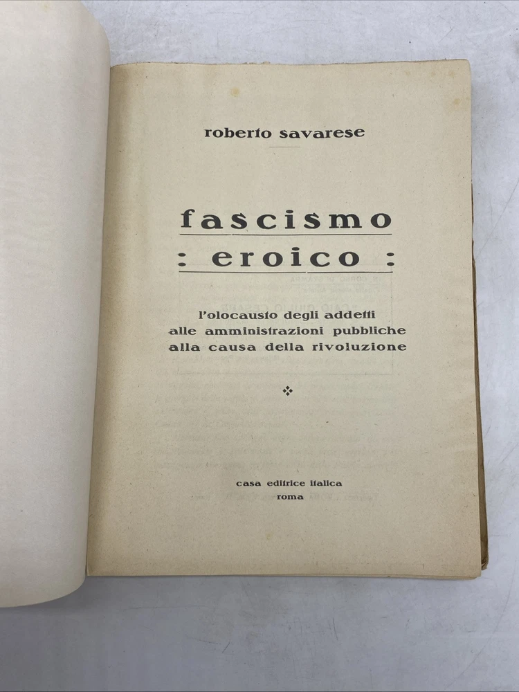 ROBERTO SAVARESE - FASCISMO EROICO - CASA EDITRICE ITALICA ROMA