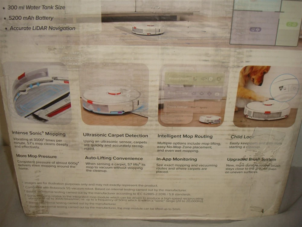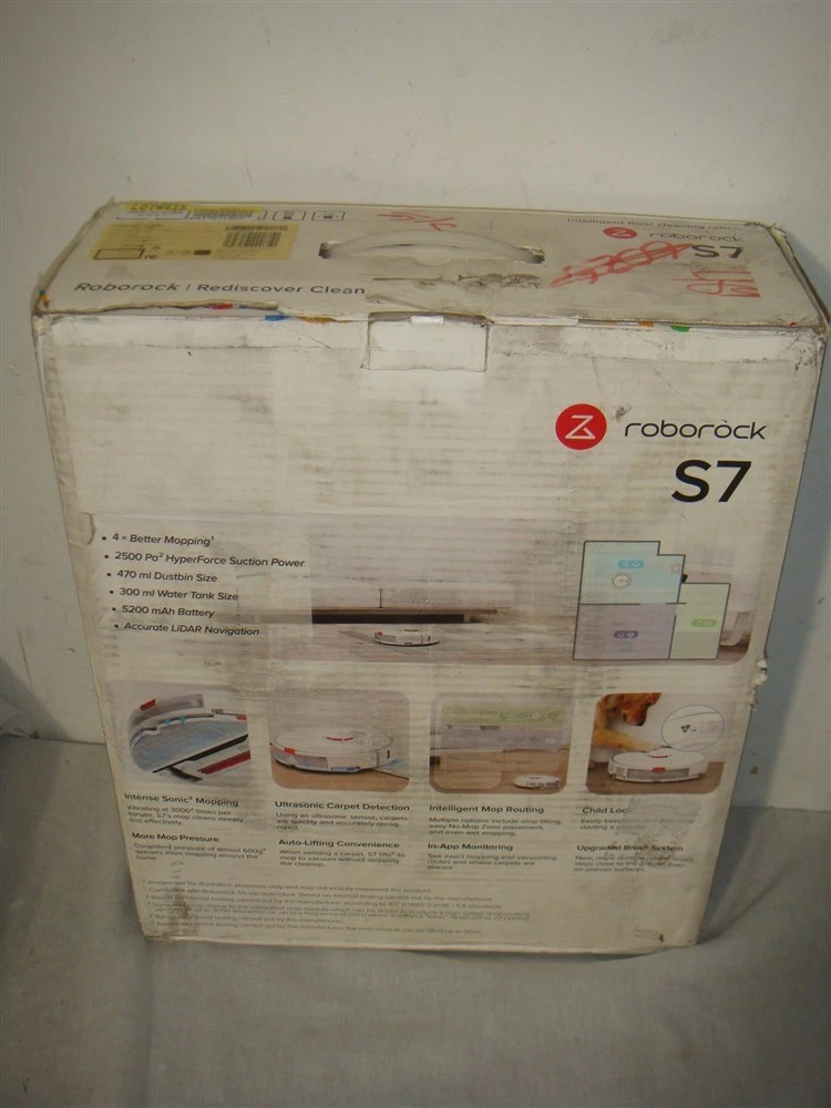 ROBOROCK S7 ROBOT VACUUM AND SONIC MOP WITH LIDAR NAVIGATION COMBO WHITE -READ! You are bidding on ONE ROBOROCK S7 ROBOT VACUUM AND SONIC MOP COMBO IN WHITE. This is a robot vacuum that is in like new condition physically, and has never been used, however has some kind of internal issue that keeps it from functioning. It fully charges, powers up, pairs with the app, but while trying to start and record a map, it comes on for a second, then just shuts off. No error codes or anything. We have no idea what the issue is, and aren't techs in any sense of the word. Because of this, we are selling it as-is for parts/repair. The original box is a bit scrached up and dirty, and the unit looks new, so if you're a do-it yourselfer, this is for you! It comes with everything shown. These are normally $649. This is your chance to save big-time so don't miss out!! PLEASE READ EVERYTHING IN THE LISTING DESCRIPTION PRIOR TO BIDDING. ITEMS COME AS SHOWN IN THE PHOTOS WITH ONLY WHAT SHOWN. WE DO NOT SHIP OUTSIDE THE USA/CANADA. IF YOU LIVE OUTSIDE THE USA/CANADA AND DO NOT HAVE A CONFIRMED SHIPPING WITHIN THE US THEN WE CAN NOT SHIP TO YOU! YOU MIGHT LOOK INTO FINDING A MAIL FORWARDING PROVIDER IN THE USA AND GETTING THEIR ADDRESS ADDED AND CONFIRMED IN YOUR PAYPAL ACCOUNT! ALSO IF YOU LIVE IN CANADA UNDERSTAND THAT DUTIES AND CUSTOMS TAXES ARE COLLECTED PRIOR TO DELIVERY AND WE DON'T EVER KNOW WHAT THOSE RATES ARE OR HAVE ANY CONTROL OVER THEM AT ALL. KEEP IN MIND IF BIDDING IN CANADA YOU WILL END UP HAVING TO PAY THESE. WE'VE DISCOVERED THAT THOSE WANTING SO SAVE MONEY ON THESE FEES CAN SELF-BROKER PACKAGES LOWERING THEM SIGINIFICANTLY. YOU CAN DO A WEB SEARCH FOR DETAILS ON THIS. PLEASE NOTE THE USE OF THE UPS SHIPPING CALCULATOR UNDER THE SHIPPING TAB. THIS USES THE UPS SITE TO CALCULATE EXACT SHIPPING AMOUNTS. WE DO NOT SHIP OUTSIDE THE US/CANADA (IF YOU LIVE IN CANADA THERE IS A DROP DOWN MENU TO SWITCH THE DESTINATION FROM USA TO CANADA). PLEASE UNDERSTAND THAT THESE ARE THE ACTUAL SHIPPING PRICES PER UPS THAT WE CAN'T CONTROL. WE DO OUR BEST TO PRICE ITEMS COMPETITIVELY ENOUGH THAT THE INCREASED SHIPPING AMOUNTS DON'T MATTER BUT WE WANT YOU TO BE HAPPY WITH EVERY ASPECT OF THE SALE. PLEASE E-MAIL US IF YOU HAVE QUESTIONS PRIOR TO BIDDING SO THERE'S NO CONFUSION Powered by SixBit's eCommerce Solution